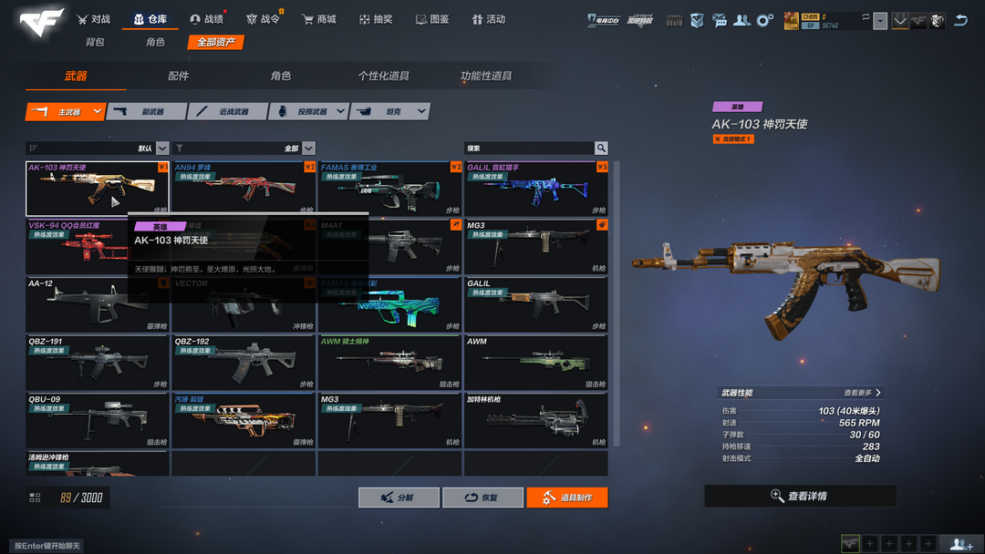 虐菜号【CFHD】AK-103神罚天使,VSK-94会员红魔,GALIL霓虹猎手