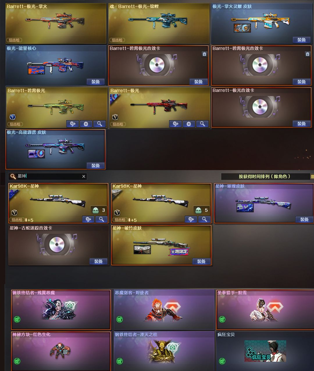 隼+影煞+幻神星神+小红蛙蛙套+枪娘暗刃+G36C幻影+玄豹套+炽芒蝶刃+双异变+极光全皮