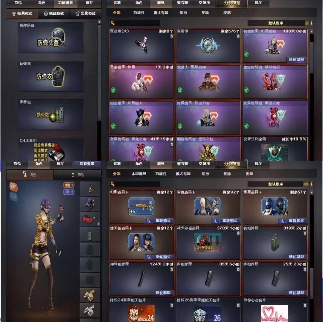 装备描述:注意:----V角色每天都有一次免费选择属性的机会,除了四防英雄角色司雨影豹六防葵生化常用属性【生化背包变更,捕食者之眼-无需换弹,狂暴化,移动速度,生存本能】、尽量换这几个生化属性,老铁们可根据需要选择其他角色刷属性,觉得好的老铁们可进行收藏账号,收藏之后在租号玩网页版或手机APP上租号能便宜很多,注各位玩的开心,快乐