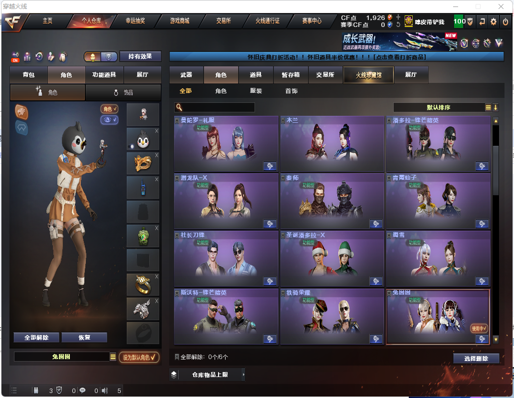租6送1角色名:生化号