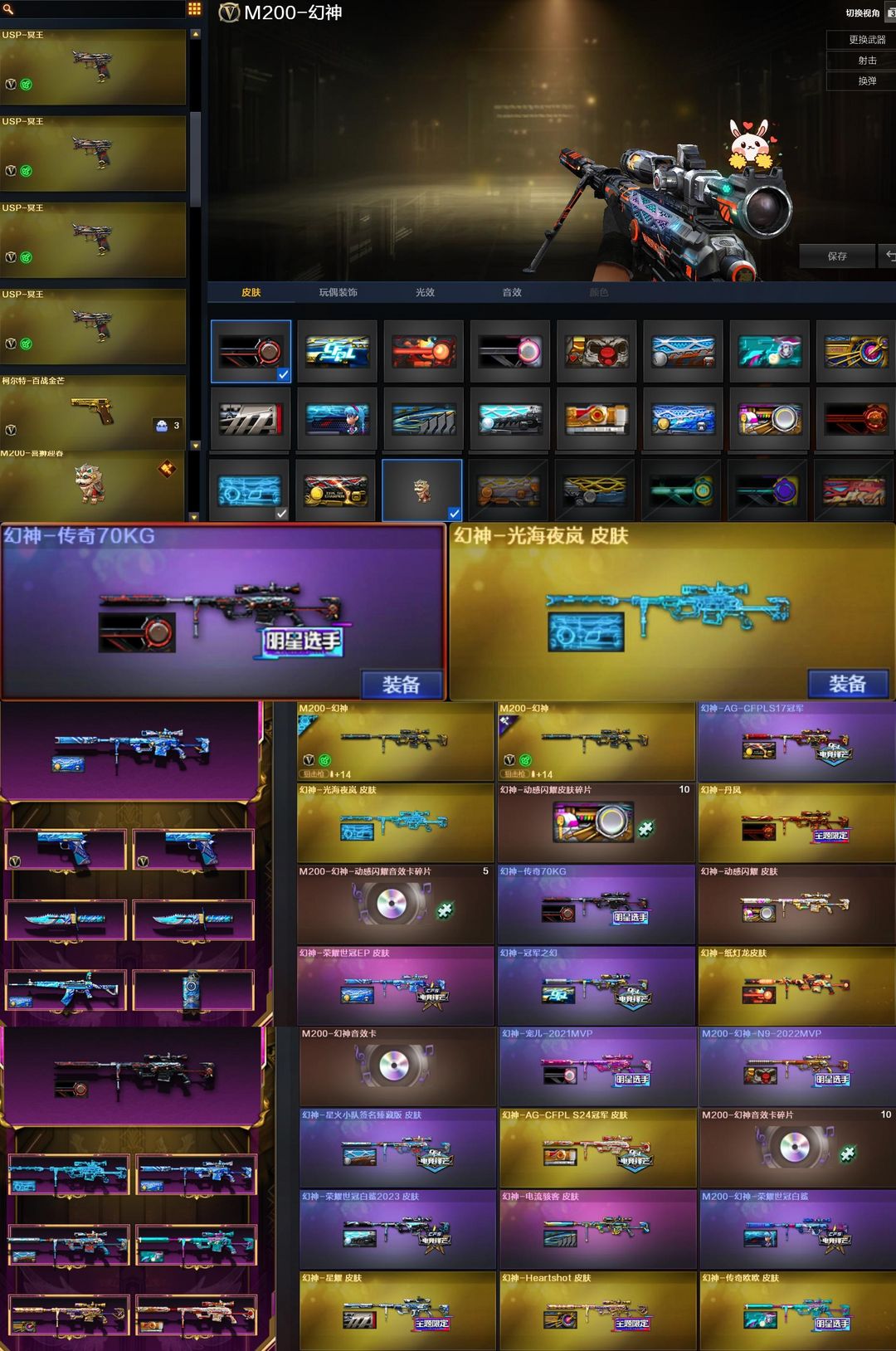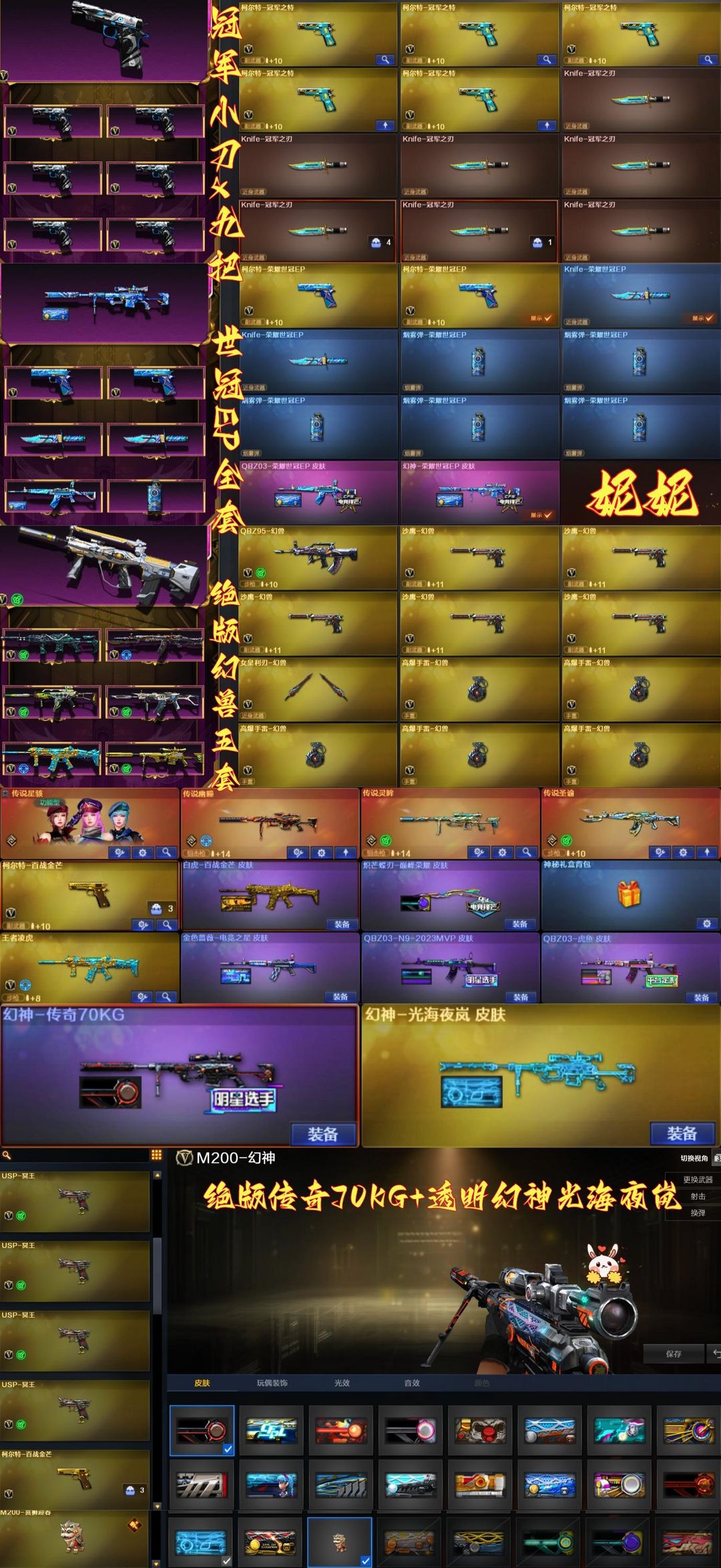 妮妮小刀EP世冠幻神全穿金色ID✨绝版幻兽五套+幻神传奇70KG+光海夜岚✨念旧QBZ百战金芒柯尔特