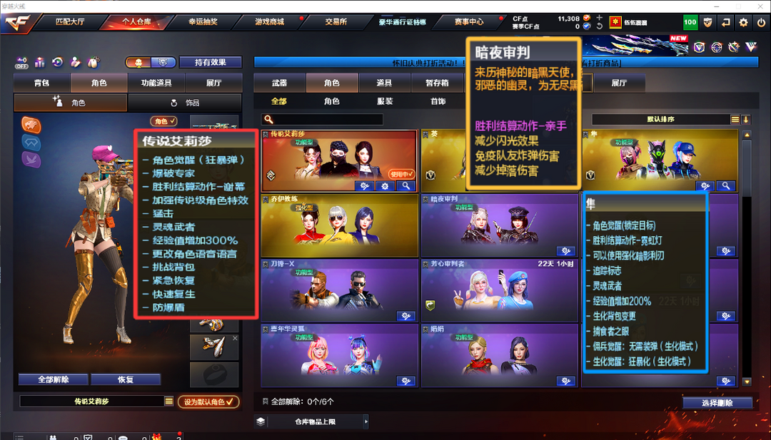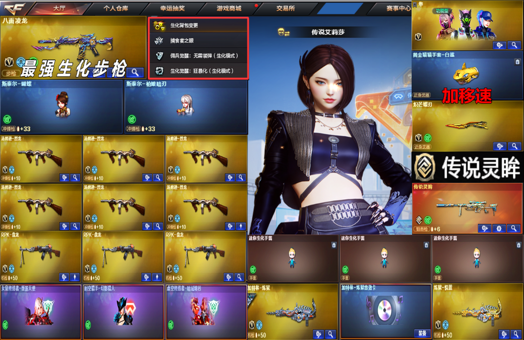 传说艾莉莎灵眸【八面凌龙】⭐6烈蝴蝶4防隼生化背包变更炽芒蝶刃加移速/炼狱音效卡⭐幻神白虎之魄幻灵套
