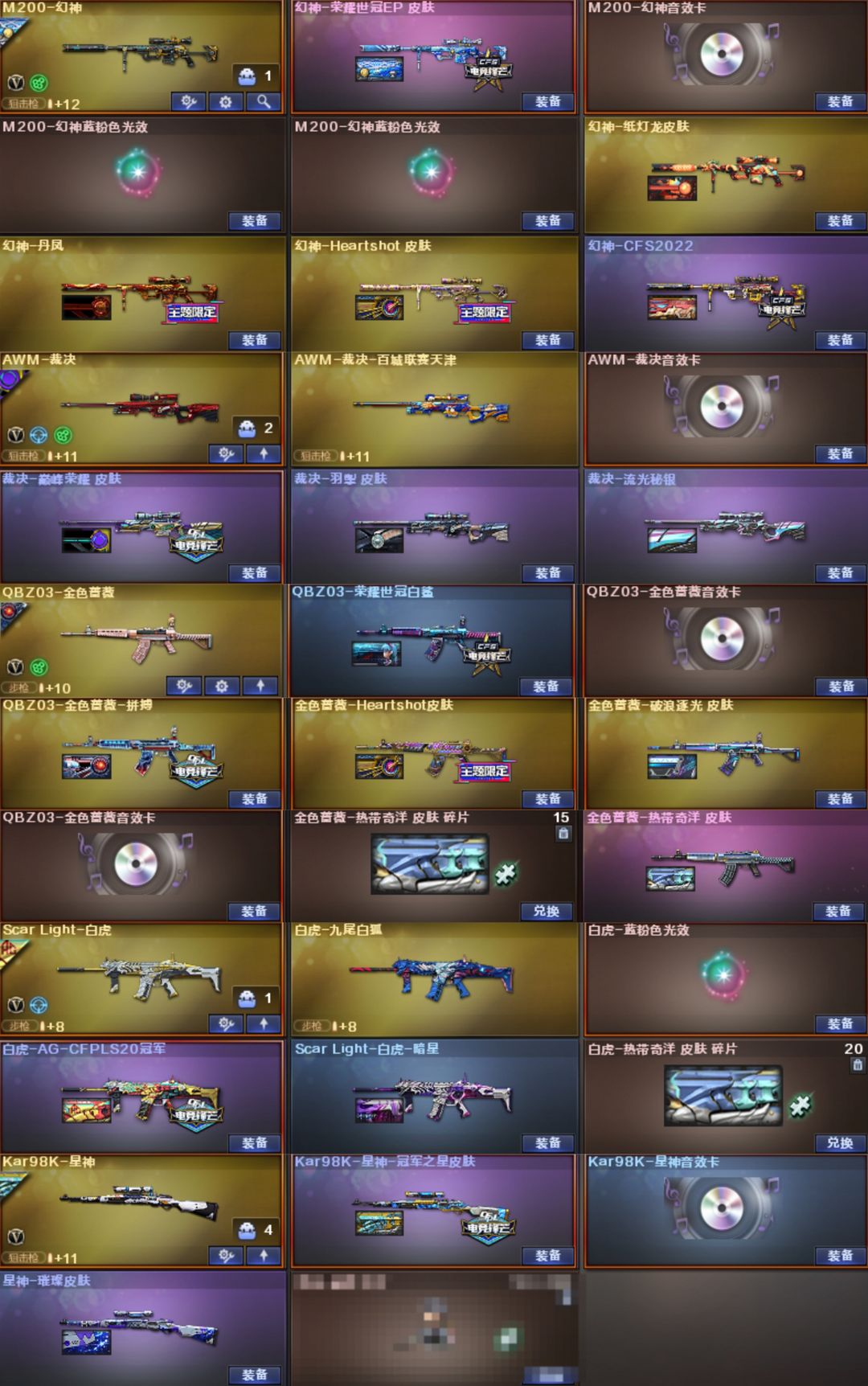 EP套天袭天戎幻影⭐幻神卡EP5皮⭐裁决音效卡3皮⭐星神卡4皮QBZ拼搏5皮白虎冠军3皮⭐炼狱泡泡象
