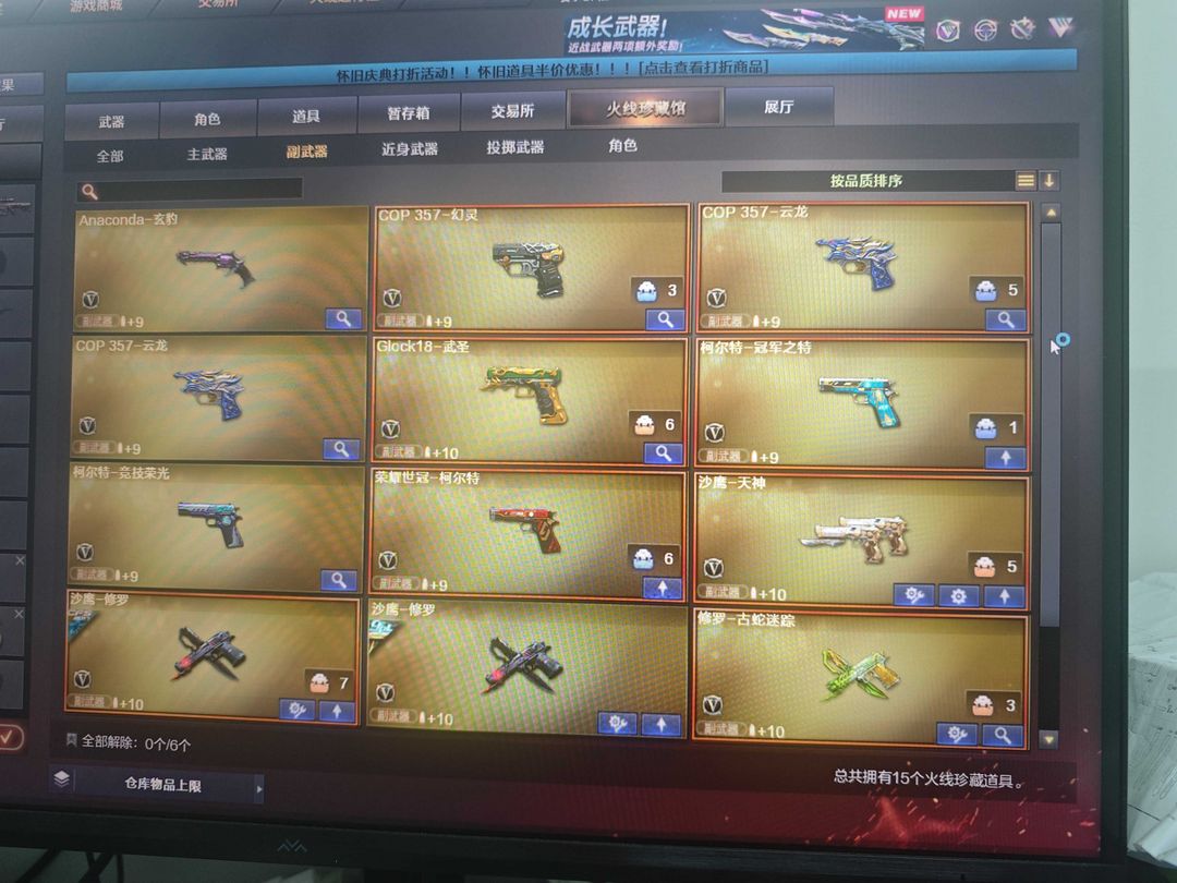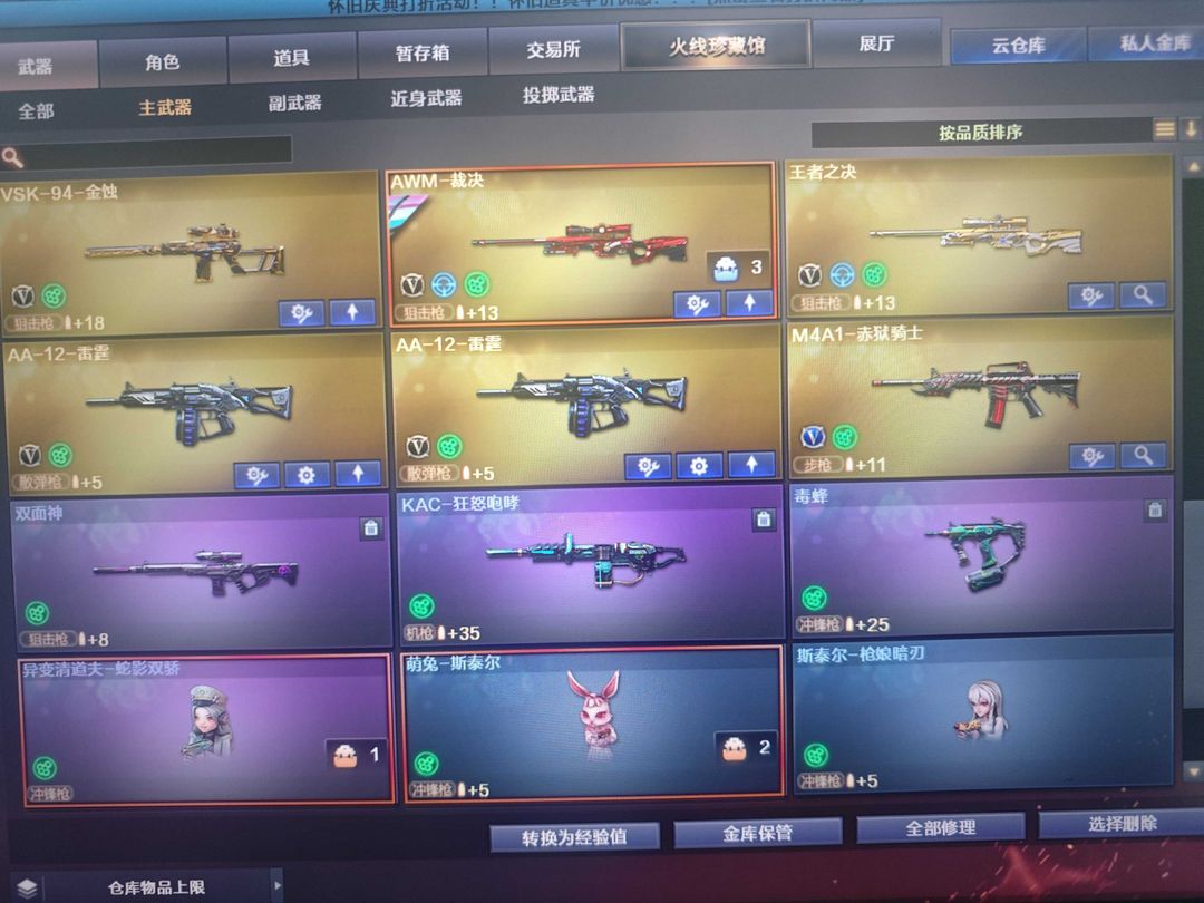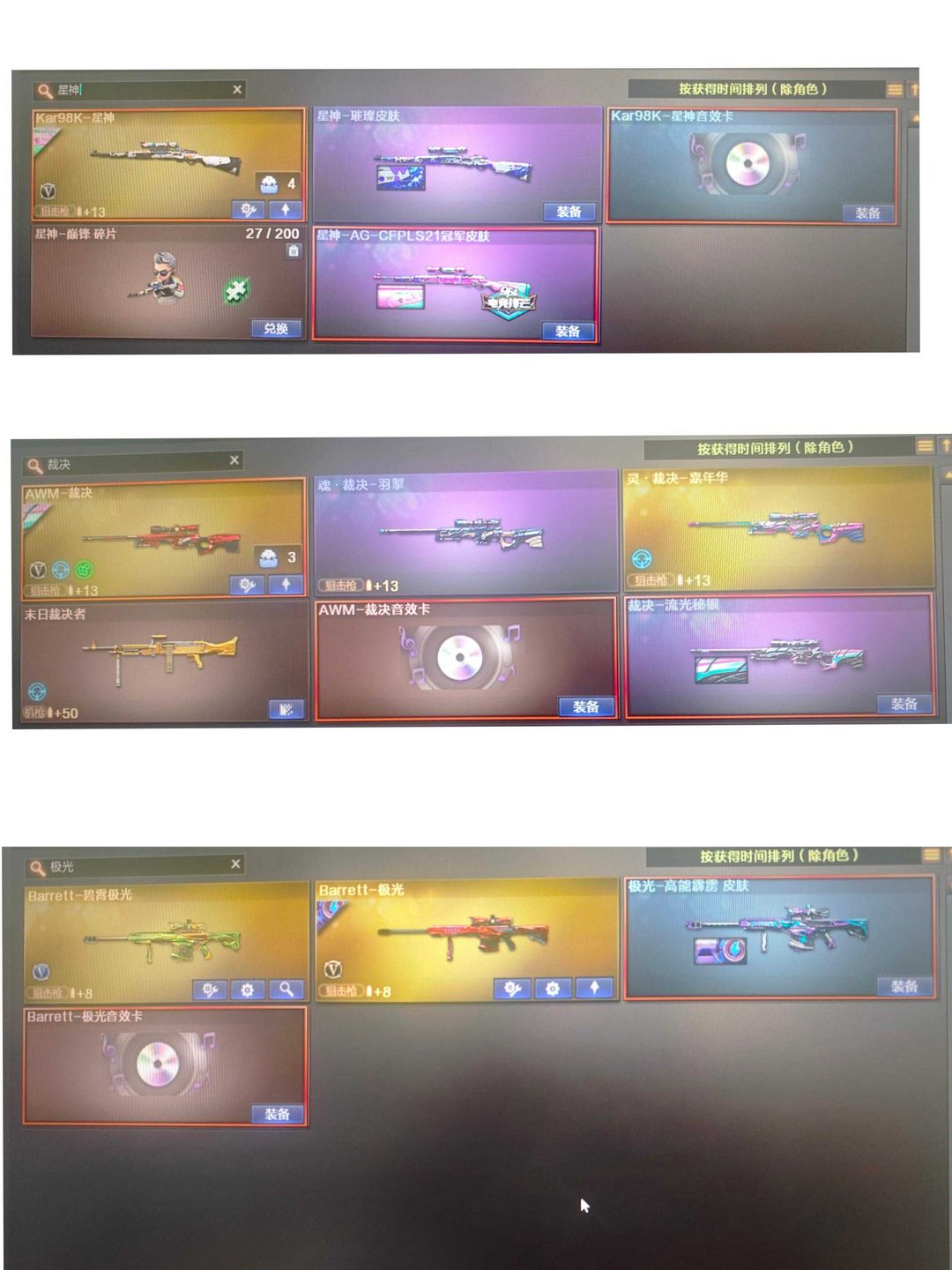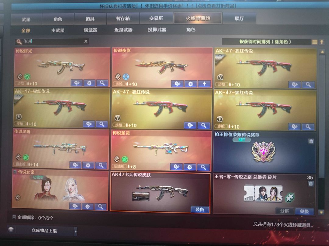 五传说,女帝,传说幻神、2幻神8皮(ep)加音效卡,狙击枪都有皮加音效卡。两炽芒蝶刃斯特尔幻影