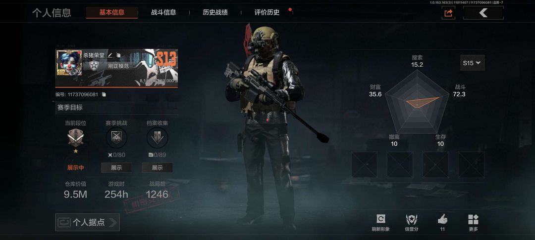 有最新的收割者刀皮,仓库价值9.5M,科恩币583万,希望租客可以好好对待,请不要动那个速递工作盔