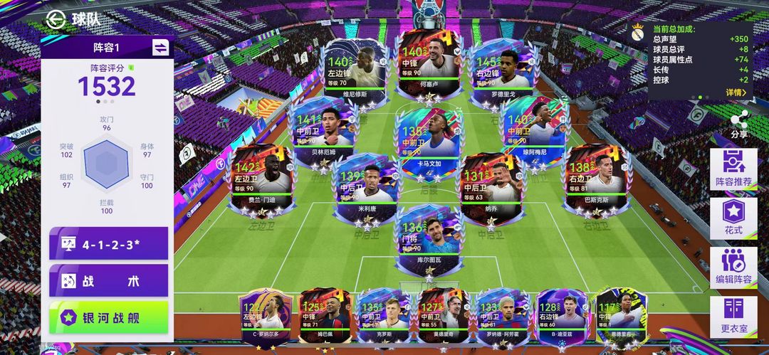 皇马队套顶配、金边罗、姆巴佩、满星小熊、1532高分、全员技能抬脚就有