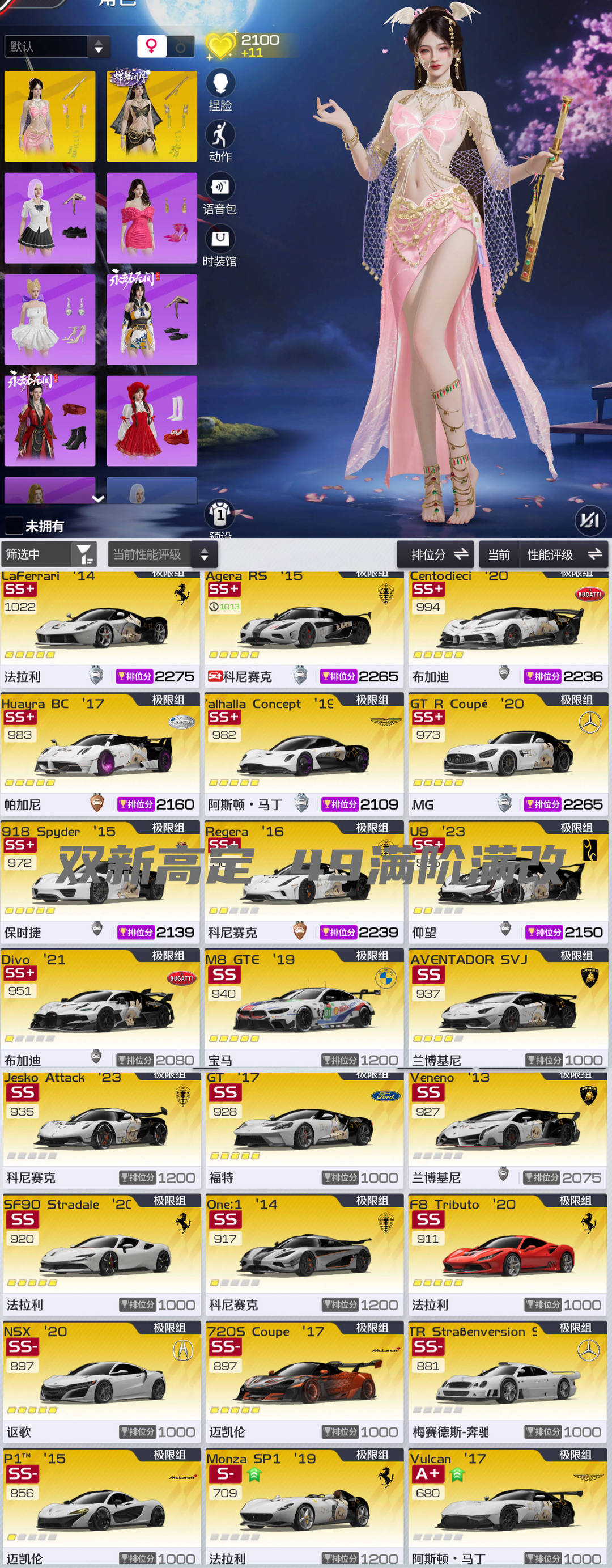 三端互通✨49满阶顶氪号/已充50W✨双新高定貂蝉/车辆外观榜271名✨所有分组都有T0/几乎车都有