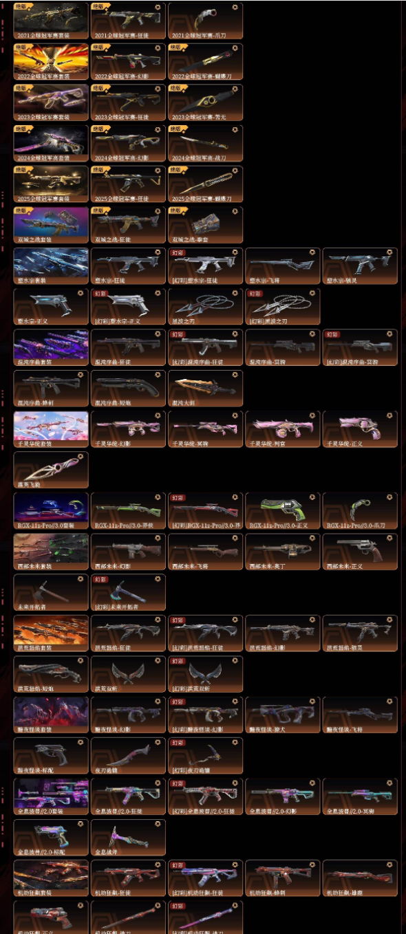 装备描述:40万库存各种套装最新颗秒狂徒25冠军朋克3.0掠影2.0套22冠军苍龙之刃光荣异象显卡狂徒离子2.0虚空狂徒VCT2025爪刀西部未来鬼丸国刚恶鬼2.0双城狂徒拳套全特效掠影套装奇点2.0黯夜怪谈全特效混沌序曲千灵华绽洪荒怒焰塑水宗全息波普2.0机动2024全球冠军显卡3.0艾沃莉781协议源能者盖亚复仇2023全球冠军2021全球冠军归零者天界神兵天界神兵2.0盖世英雄异形猎人紫金2.0侦查力量耀鳞威龙源能者危机堕天般若假面海洋之星离子武器日冕雄狮双城之战正义
