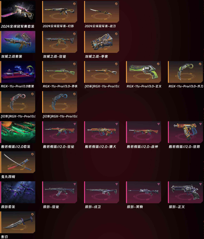 可排位大库存☆24全球套☆RGX套☆混沌序曲☆塑水宗☆掠影套☆双城之战☆鬼丸☆源能者☆全息☆各种散件