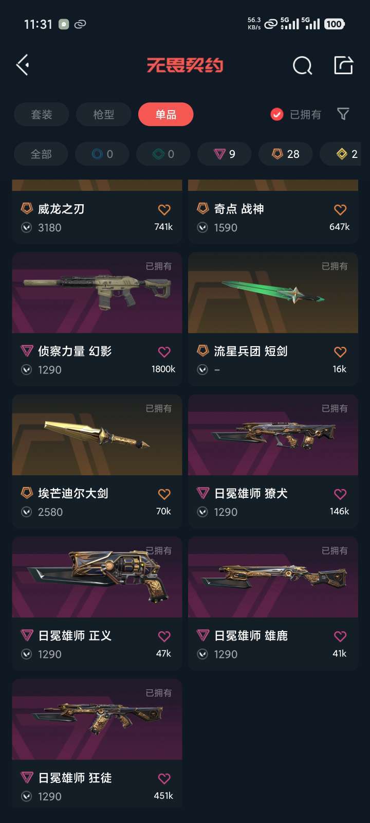 传奇数量:28