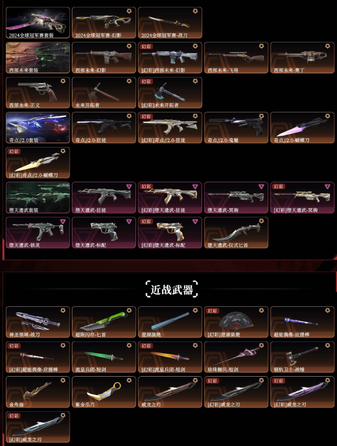 可排位大库存☆西部套☆奇点套☆2024套☆混沌☆洪荒☆堕天套☆盖亚☆紫金☆VCT☆各种散件☆炫彩