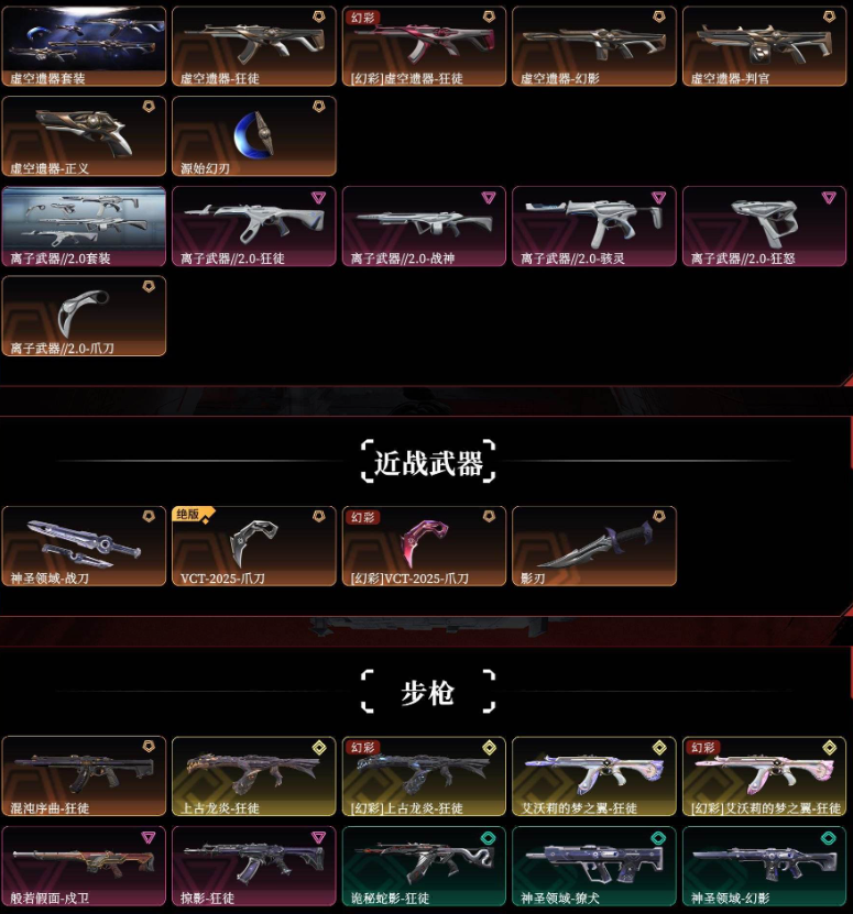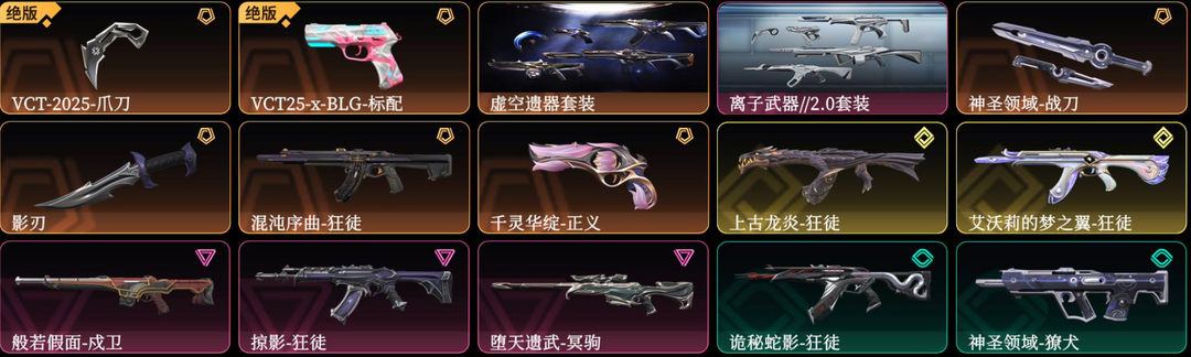可排位大库存☆25爪刀☆艾沃莉☆上古炎龙☆混沌序曲☆掠影☆离子武器☆遗武☆假面☆各种散件☆炫彩