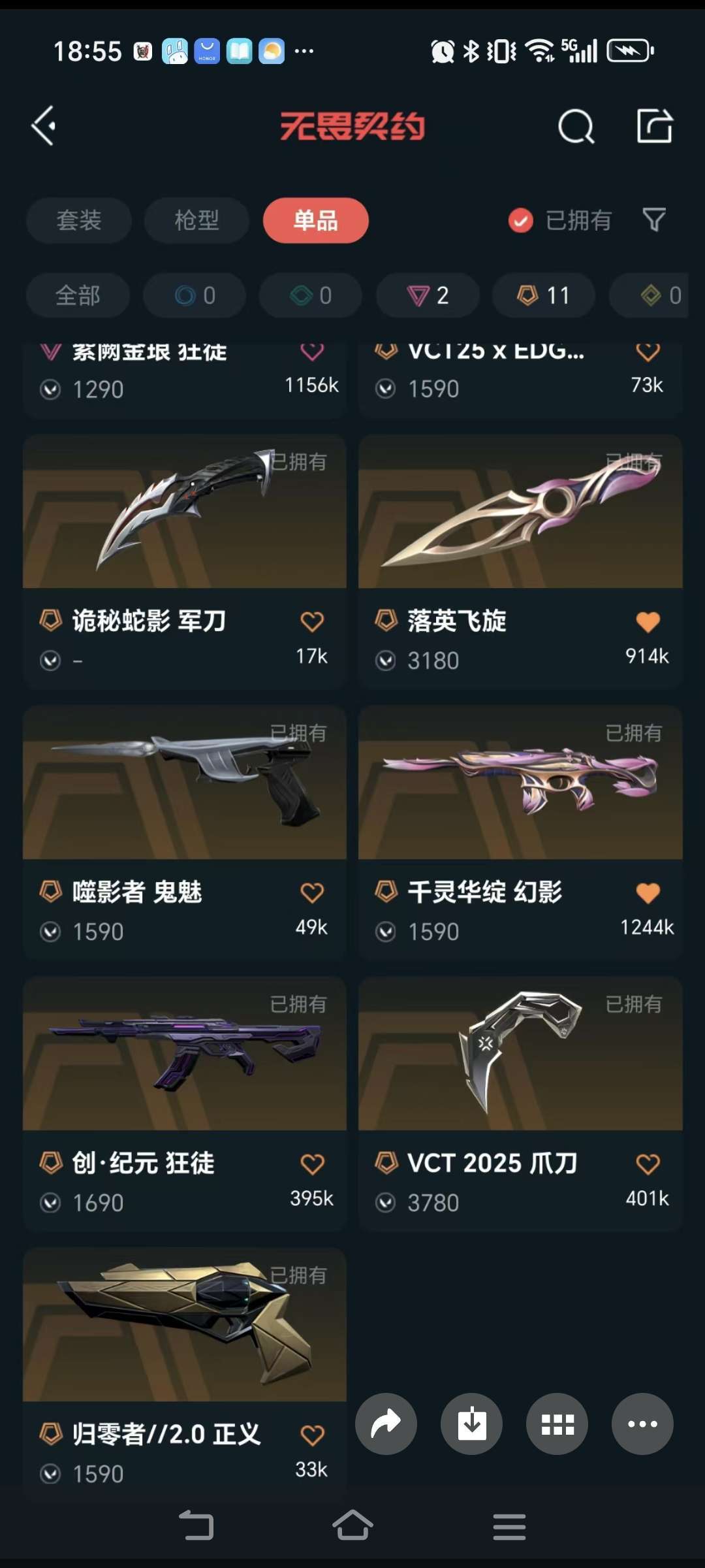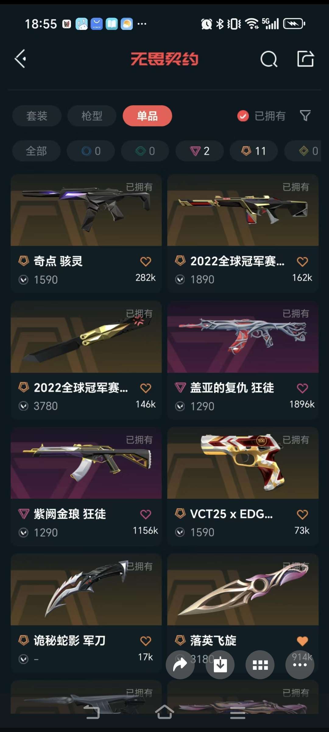 2022冠军套,千灵华绽,2025vct爪刀,奇点等等