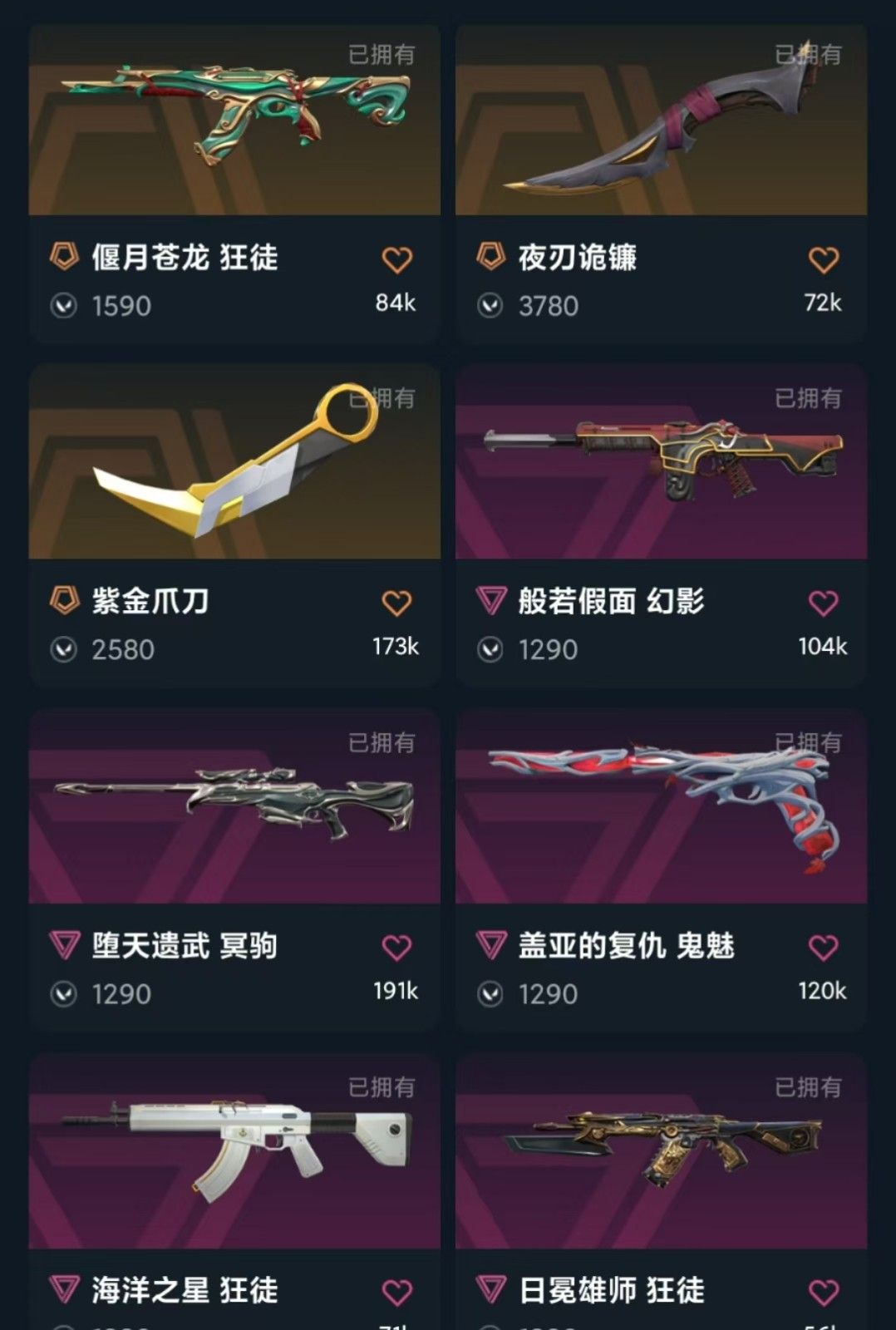 冻结秒解 可排✨显卡爪刀✨苍龙/狮子/海洋狂徒✨电玩/恶鬼/侦查幻影✨夜刃诡镰