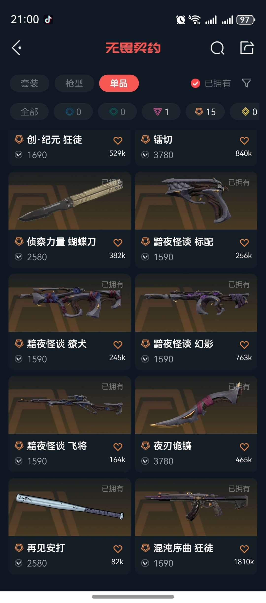 黑波之刃❤️黯夜怪谈套❤️显卡ak❤️VCT2025爪刀❤️混沌ak❤️镭切