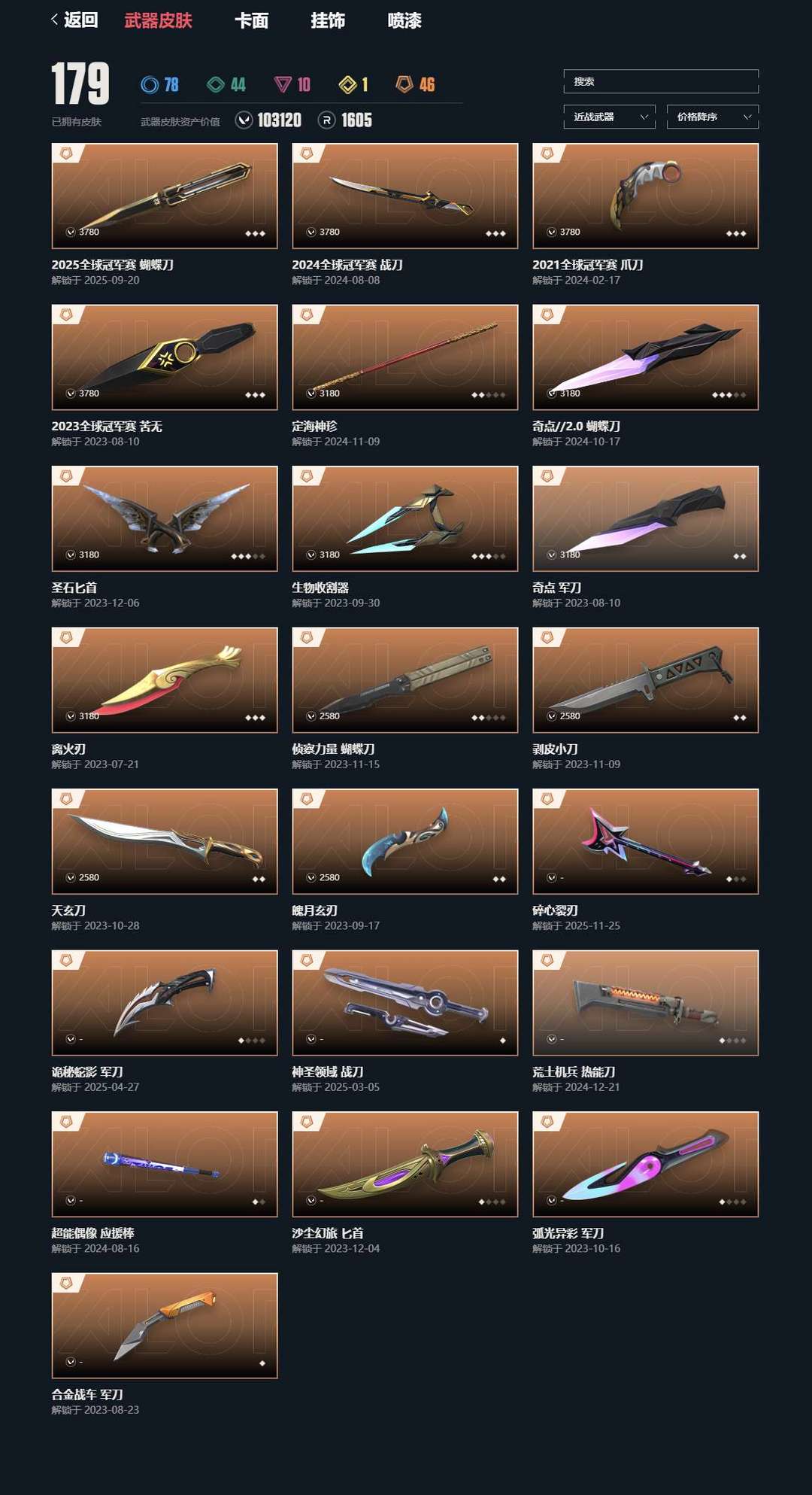 装备描述:【狂徒+混沌+青龙+塑水+超时空+洪荒怒焰+多弥尔+噬影者+奇点+光明哨兵+归零者+威龙+盖亚+紫金21+23+25】 【幻影+侦查+24冠军+奇点+光明哨兵】 【刀+金箍棒+蝴蝶侦查+剥皮小刀+21冠军+23冠军+24冠军+25冠军+离火刃+天玄刀+圣石匕首+奇点蝴蝶】 【飞将+天界神兵】 【冥驹+归零者+堕天遗武】
