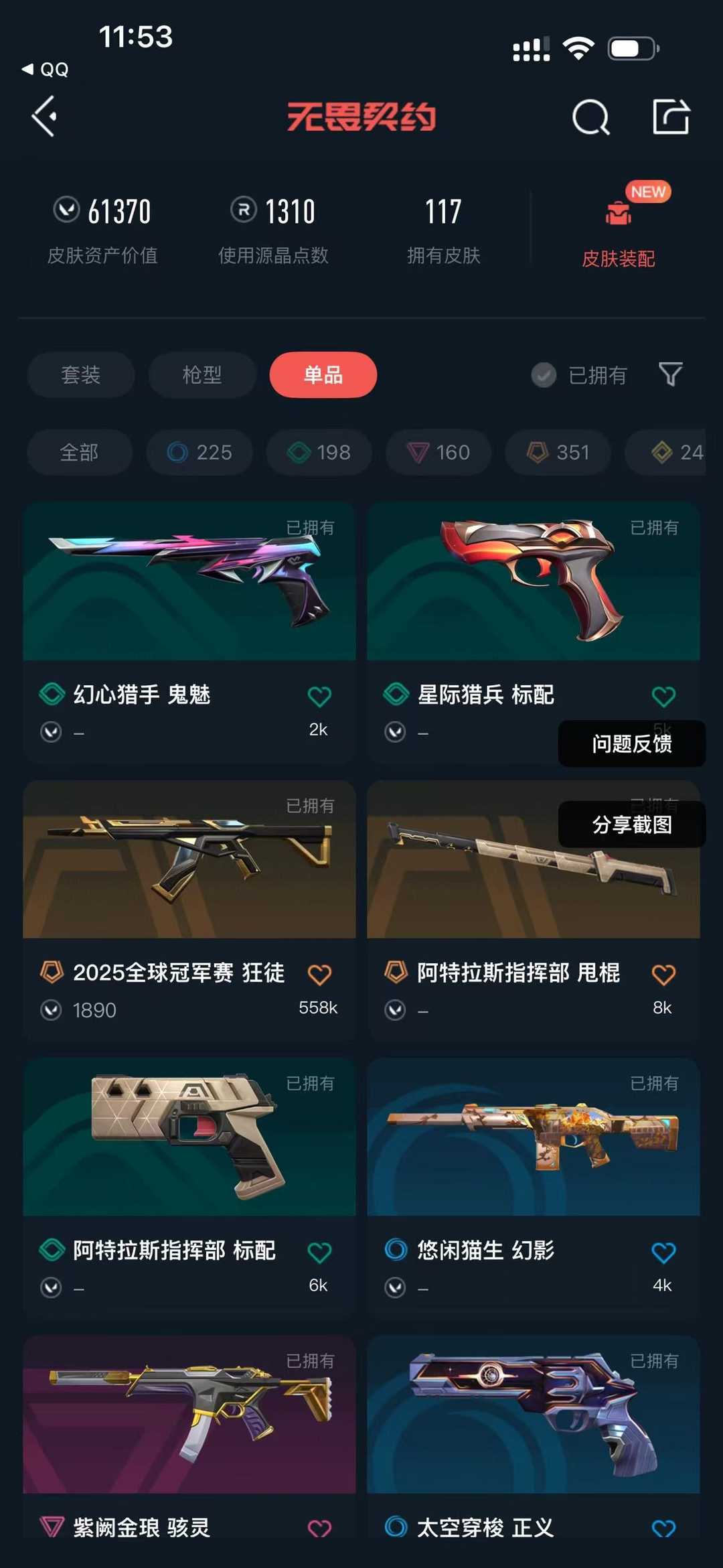 装备描述:皮肤总价值61370❤未定级❤总皮肤117❤混沌序曲❤超时空卫队❤日冕雄师❤离子2.0-狂徒❤光明哨兵❤起源❤创·纪元❤西部未来❤