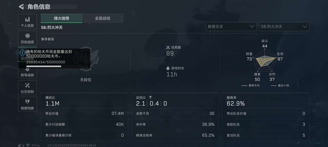 千万哈夫币 哈夫币纯币号1300w可猛攻可护航可带妹航天已开