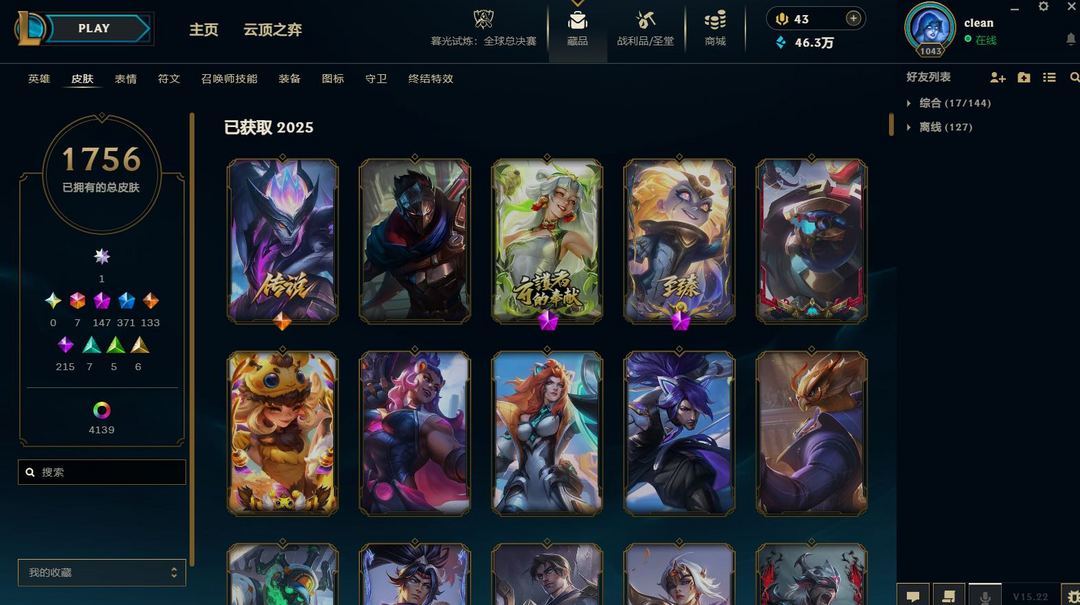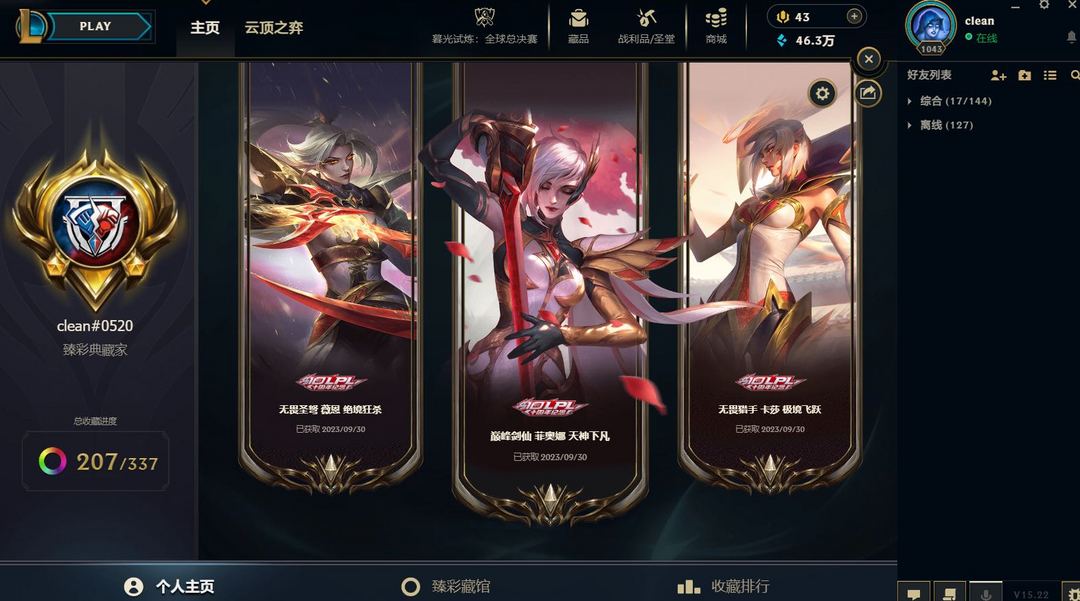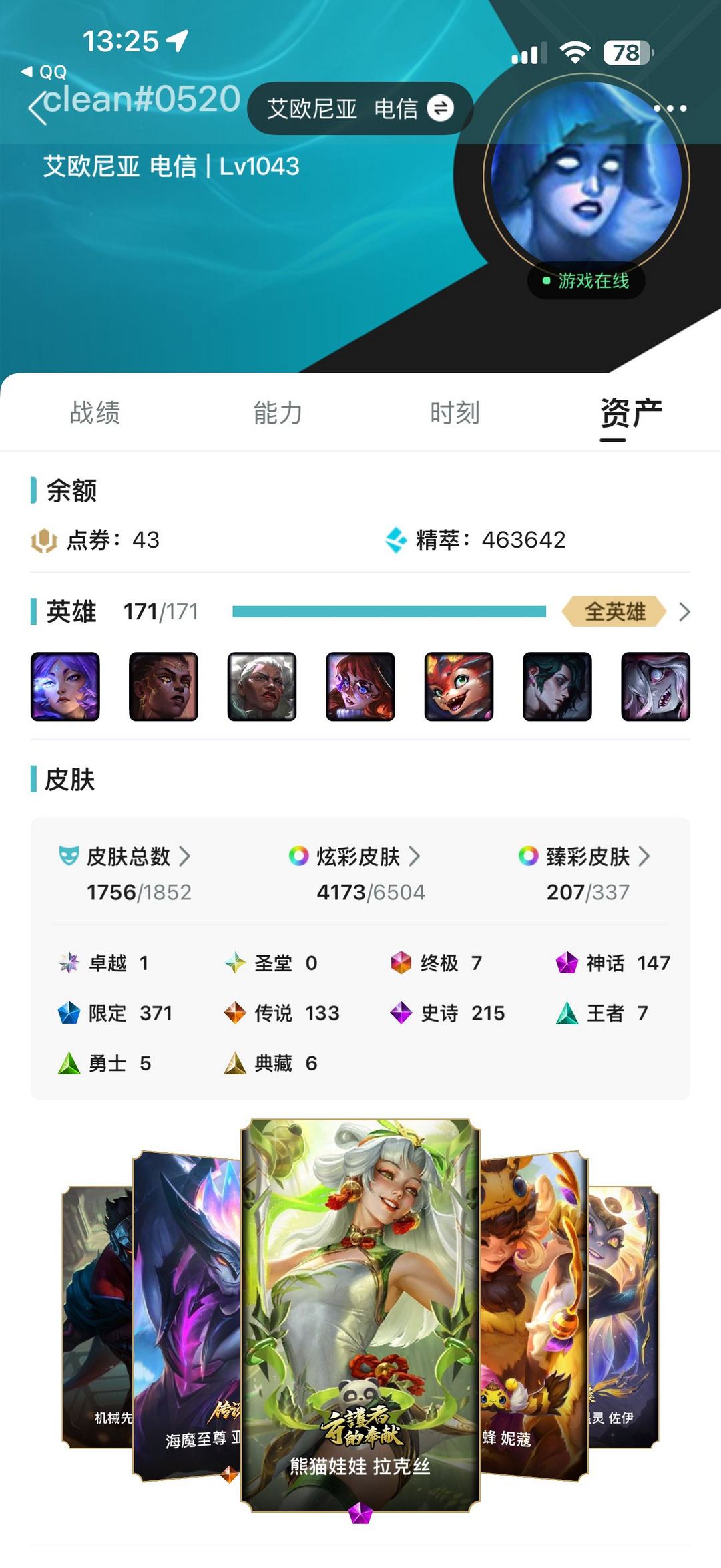 顶级黑铁可排T1大礼包原皮1756⚡炫彩4200⚡臻彩207⚡三档名人堂卡莎⚡至死不渝究极氪金老号⚡