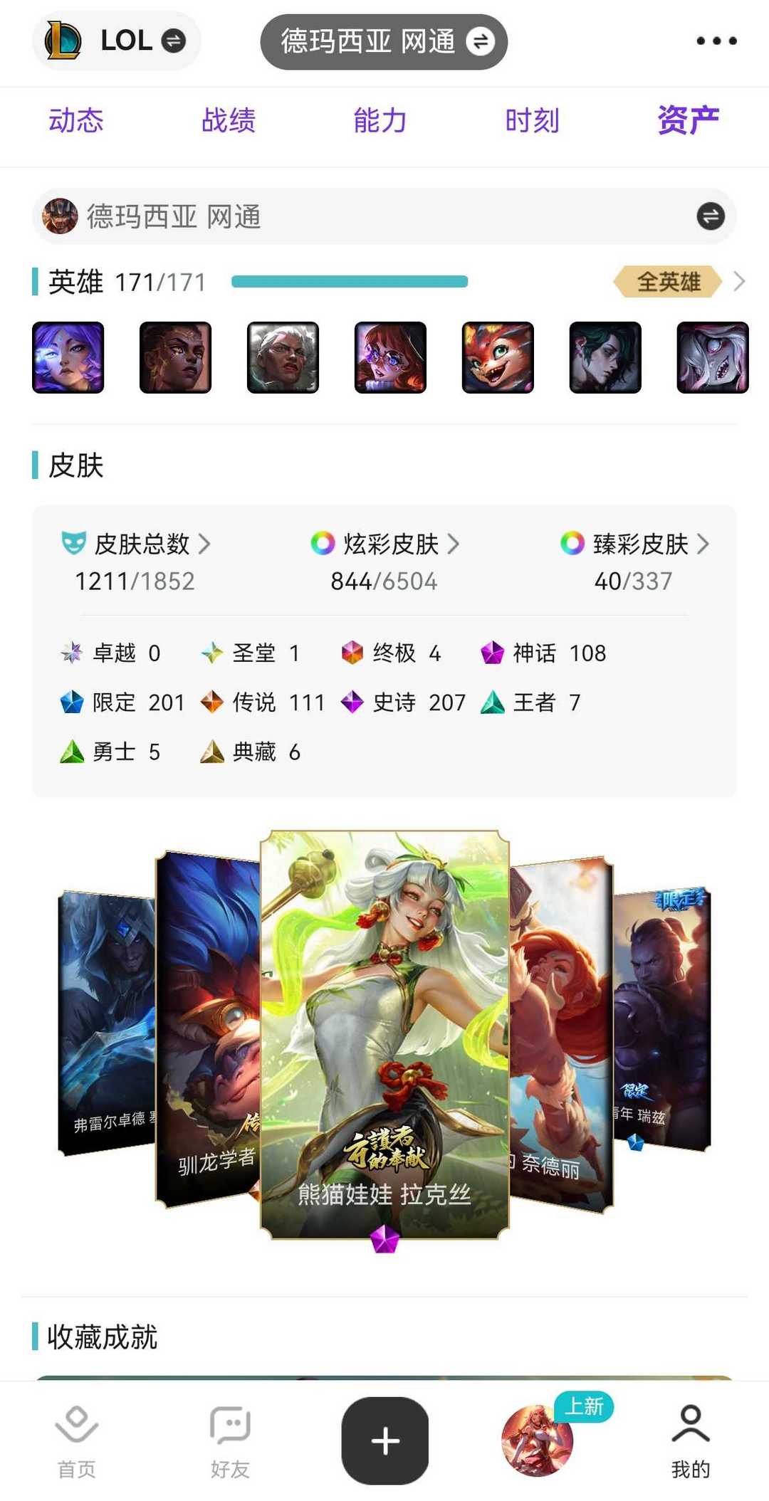 联盟五区德玛1206皮❤圣堂铁男❤熊猫拉克丝❤240限定❤115神话/34臻彩❤可排位❤