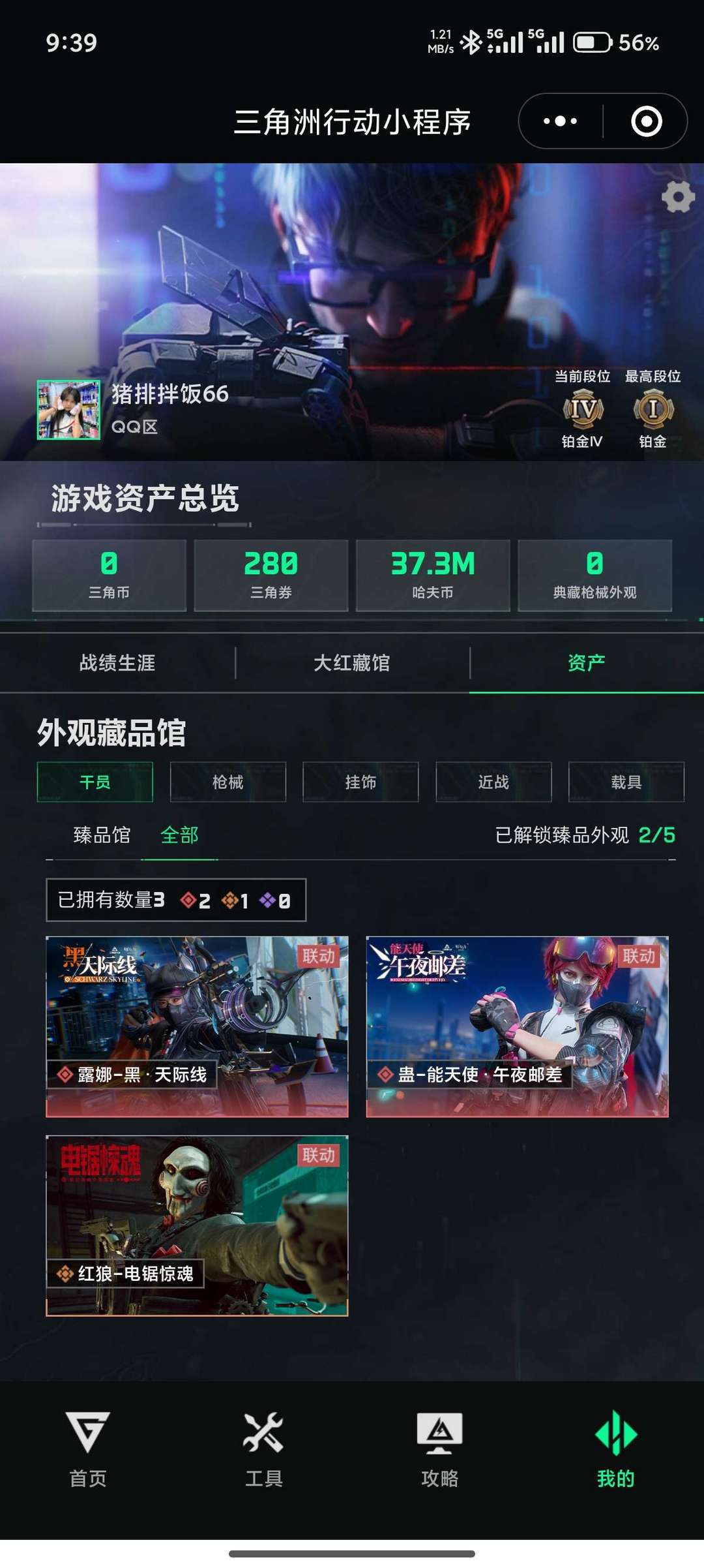 千万哈夫币 三个角色皮,两个红皮一个金皮,货币多段位低,适合猛攻。