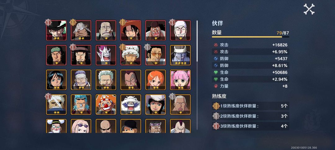 79个伙伴黄猿.路奇.大熊.莫利亚.黑胡子.艾斯.罗.青智.鳄鱼.鹰眼.艾尼路.