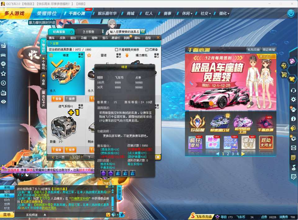 冻结重上 电信区永久S车锋速 双四级宝石改装29 永久雷诺等车