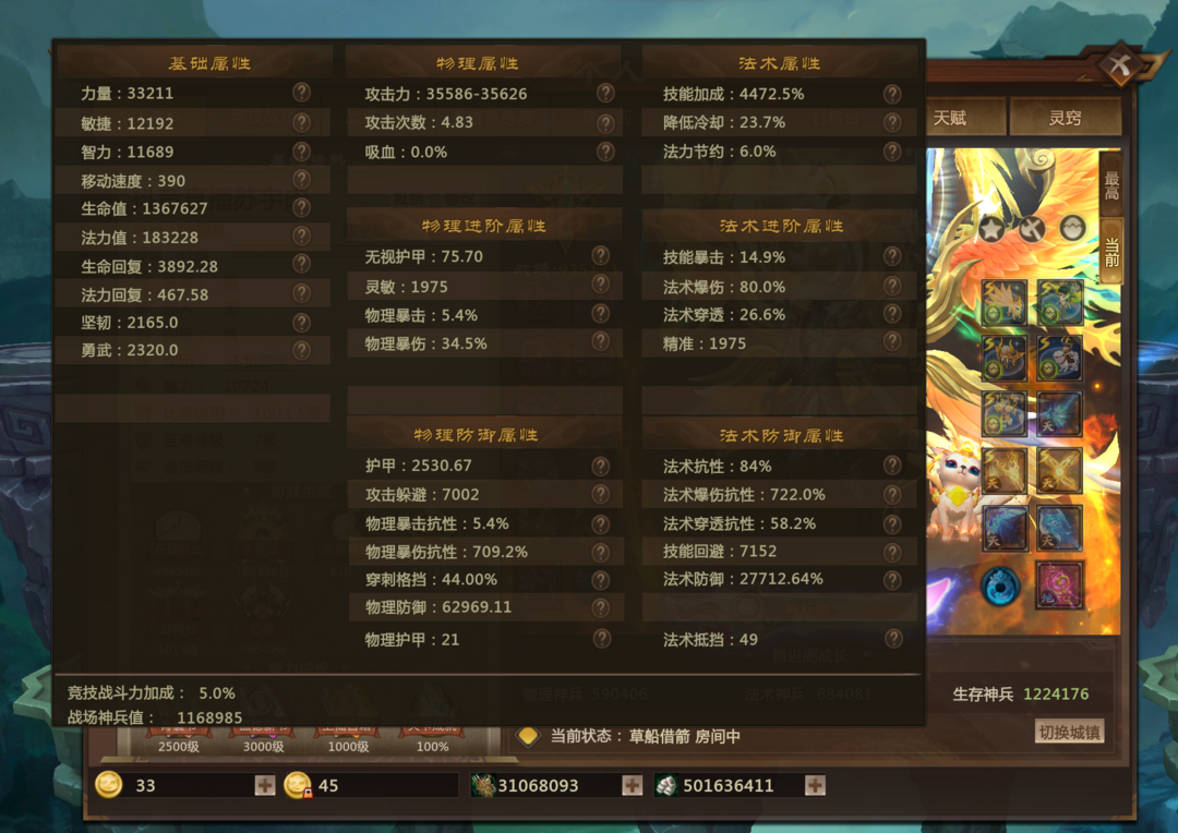 草船区152万神兵+5灵尊+封魔周年都做了 2530护甲 双抗710 722 皮肤610 皮肤尊7满