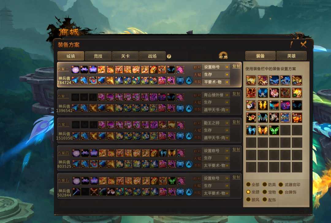 装备描述:草船区152万神兵+5灵尊+封魔周年都做了 2530护甲 双抗710 722 皮肤610 天赋名望够用 星灵 金星月 混元 灯管 钉耙 万古 双二级翅膀1级坐骑 冠军坐骑兔子+老虎绝版 鬼帝 熊猫 大圣 冰马 12章肉 12章法师 11章物理 战力套 改名卡 材料很多 细节看号