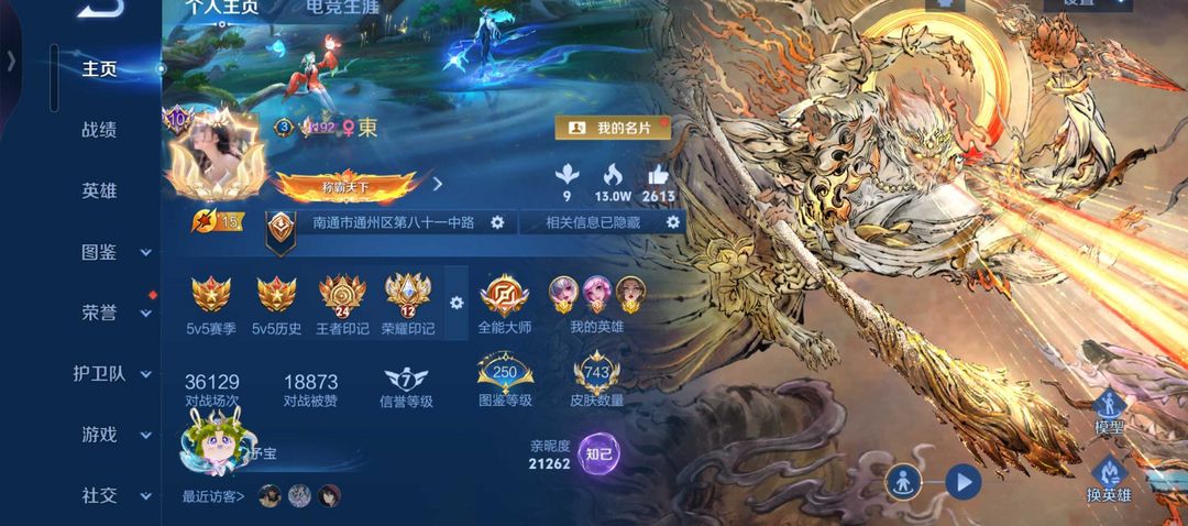 游戏区服:王者荣耀-QQ安卓-QQ账号