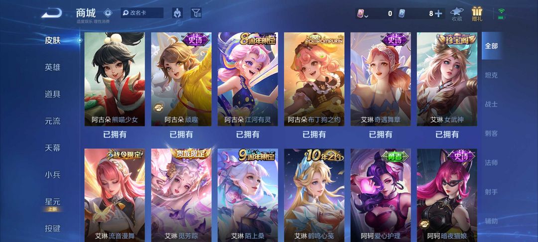 荣耀V10不禁言❤️746皮满皮肤历史国服西施王昭君小乔70段中路❤️满水晶满星元满小兵❤️