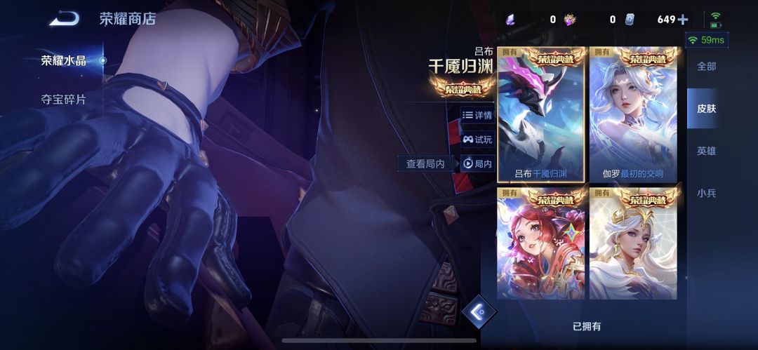 荣耀V10不禁言❤740皮满水满无双❤️吕布-千魇归渊❤️孙悟空-无相❤️凯-神罪❤️全蛇年