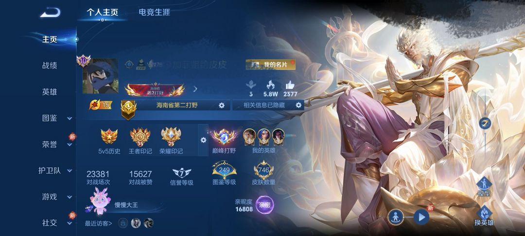 无双v10不禁言746皮❤打野106段中路74段历史11大国5小国历史巅峰百强打野❤孙悟空-无相