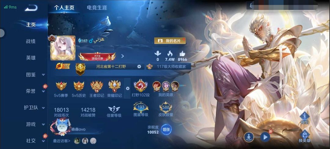 猴子无双无相在榜省级百段打野102段⭐历史三大国服老虎露娜宫本镜澜瑶妹⭐历史巅峰前50小魔方