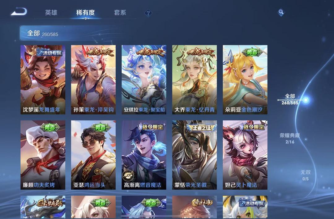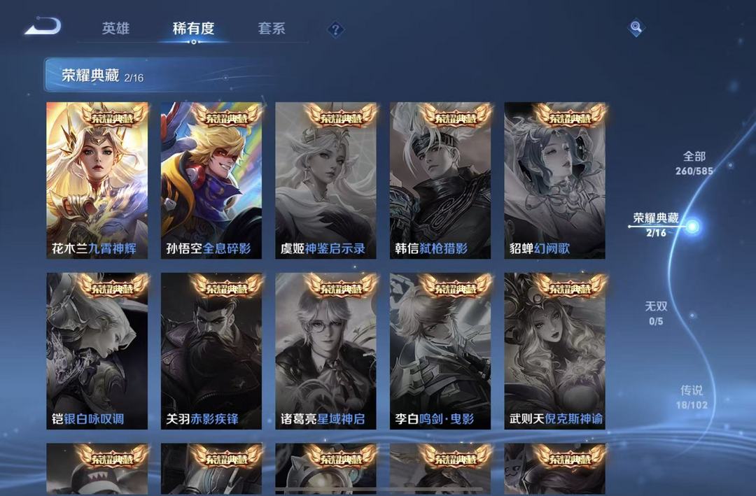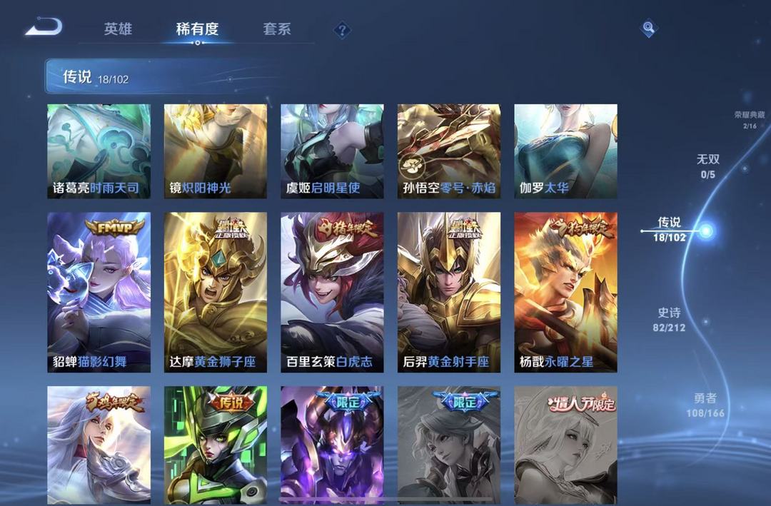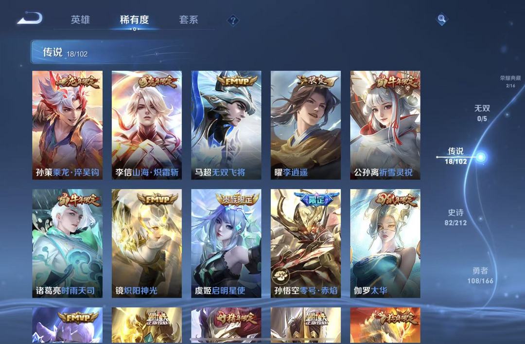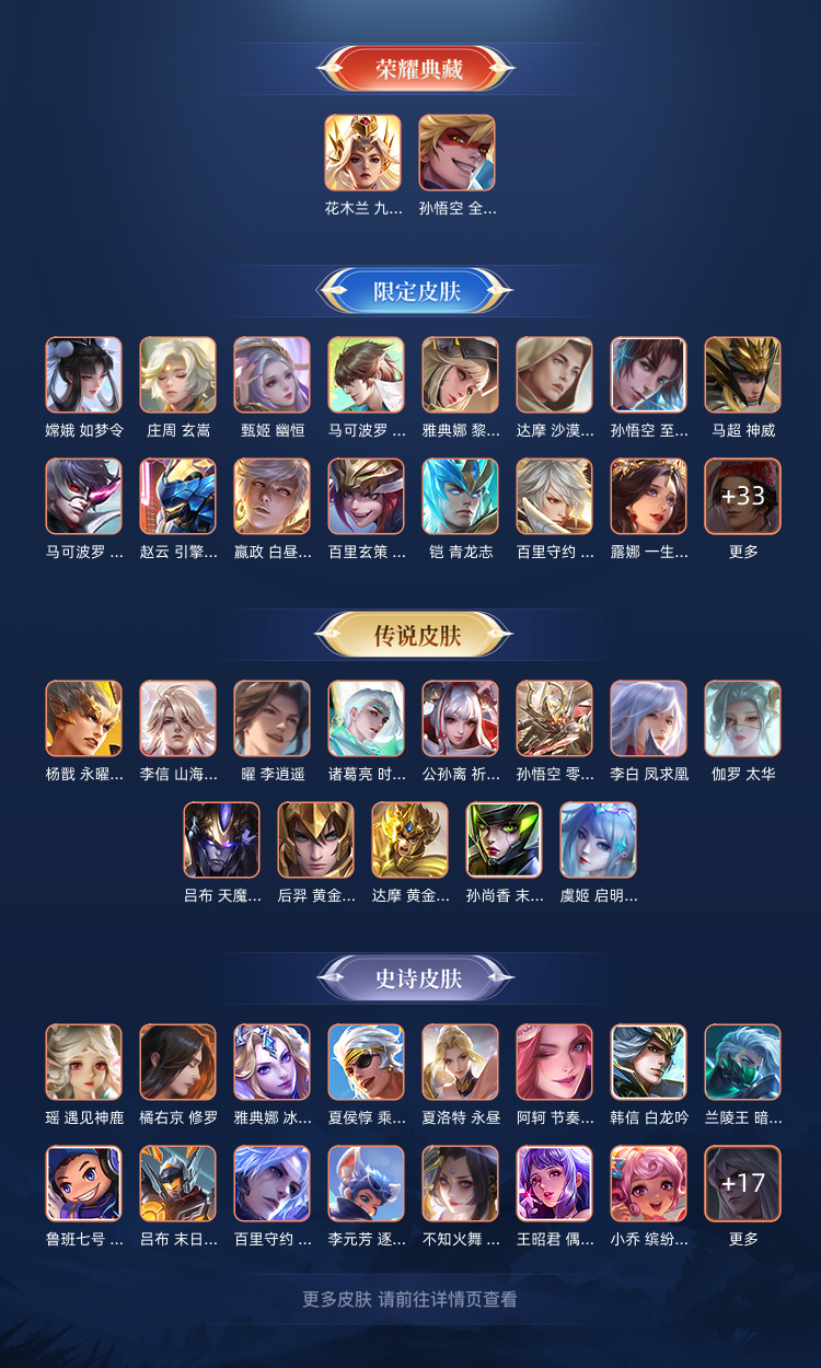 装备描述:英雄:孙悟空(孙悟空 全息碎影,孙悟空 至尊宝,孙悟空 零号·赤焰,孙悟空 大圣娶亲,孙悟空 西部大镖客,孙悟空 神迹守卫);太乙真人(太乙真人 圆桌骑士,太乙真人 华丽摇滚,太乙真人 劲辣红锅);王昭君(王昭君 精灵公主,王昭君 偶像歌手,王昭君 幻想奇妙夜);海月(海月 幻泉雾影);赵怀真(赵怀真 太极少年);夏侯惇(夏侯惇 乘风破浪,夏侯惇 战争骑士,夏侯惇 朔风刀);莱西奥(莱西奥 西部游侠);项羽(项羽 帝国元帅,项羽 海滩派对);小乔(小乔 万圣前夜,小乔 缤纷独角兽,小乔 青蛇,小乔 丁香结);雅典娜(雅典娜 黎明之约,雅典娜 冰冠公主,雅典娜 战争女神,雅典娜 单词大作战);亚瑟(亚瑟 死亡骑士,亚瑟 鸿运当头,亚瑟 潮玩骑士王,亚瑟 动物派对);杨戬(杨戬 永曜之星,杨戬 埃及法老,杨戬 潮玩骑兵,杨戬 次元傲视);苍(苍 维京掠夺者);杨玉环(杨玉环 霓裳曲);弈星(弈星 踏雪寻梅,弈星 混沌棋);虞姬(虞姬 加勒比小姐,虞姬 凯尔特女王,虞姬 启明星使);张飞(张飞 五福同心,张飞 乱世虎臣);张良(张良 一千零一夜,张良 古海寻踪,张良 缤纷绘卷);赵云(赵云