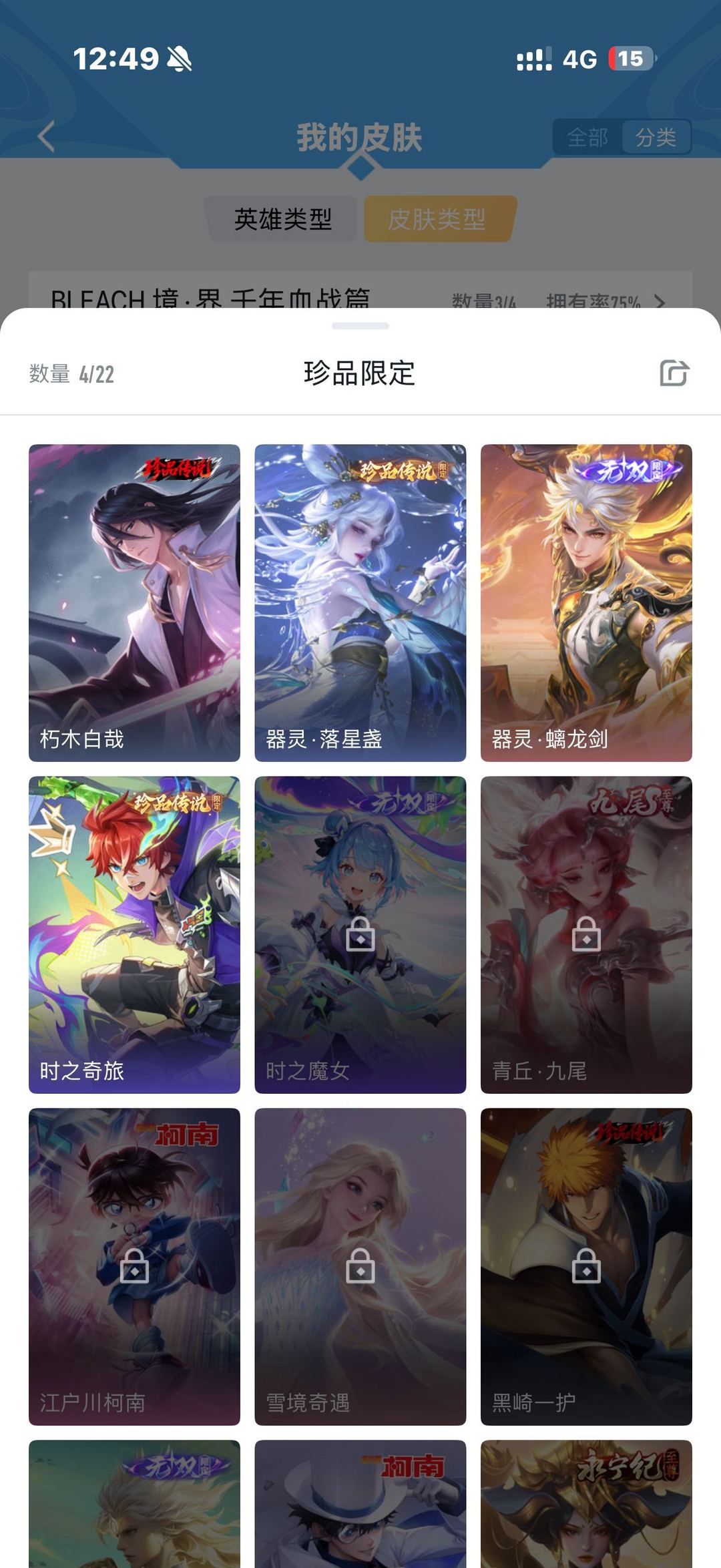 老款皮肤较多,蛇年全有,珍品和无双也不少,典藏三个,全英雄,可排位