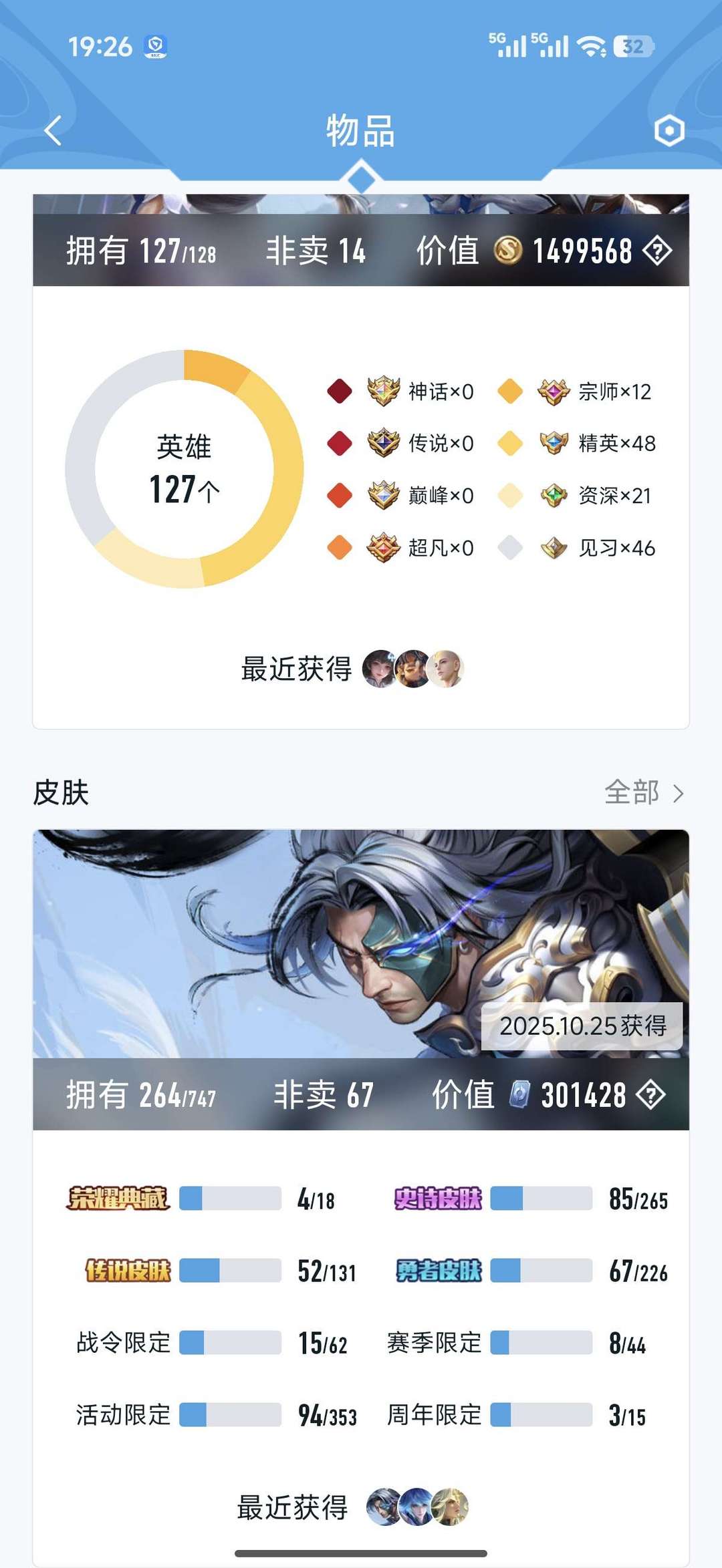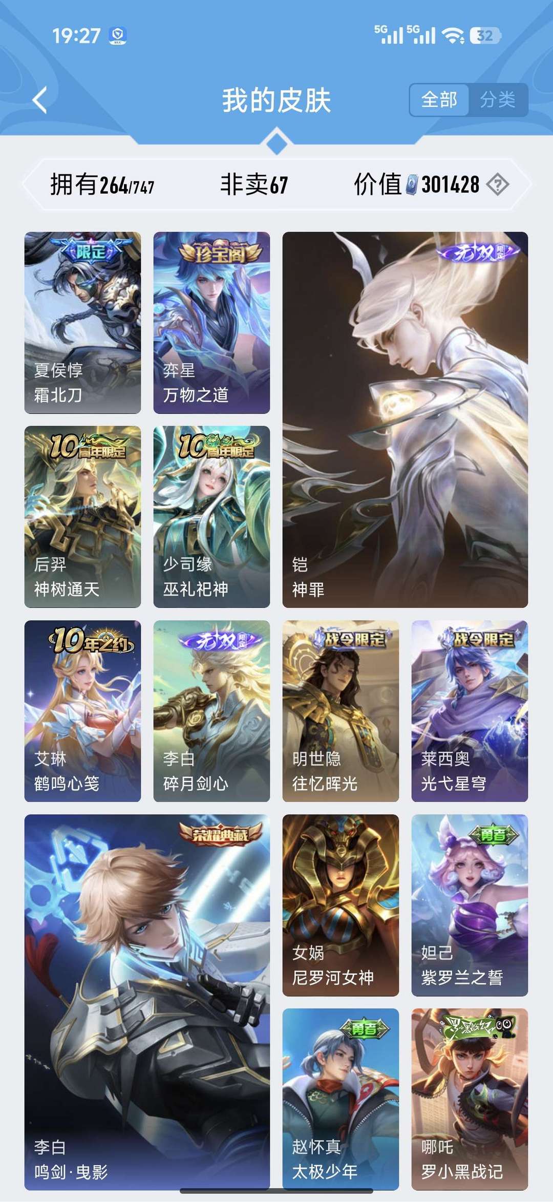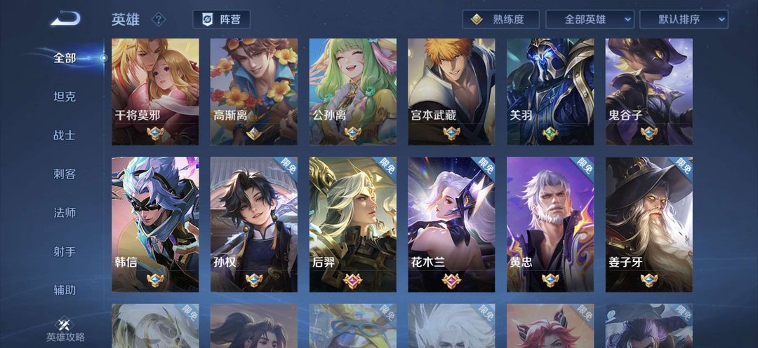 4典藏,李白芈月花木兰诸葛亮,5无双韩信小乔凯李白诸葛亮