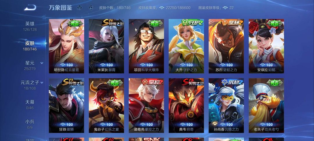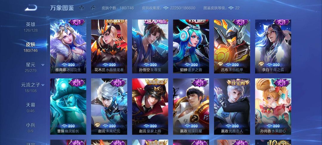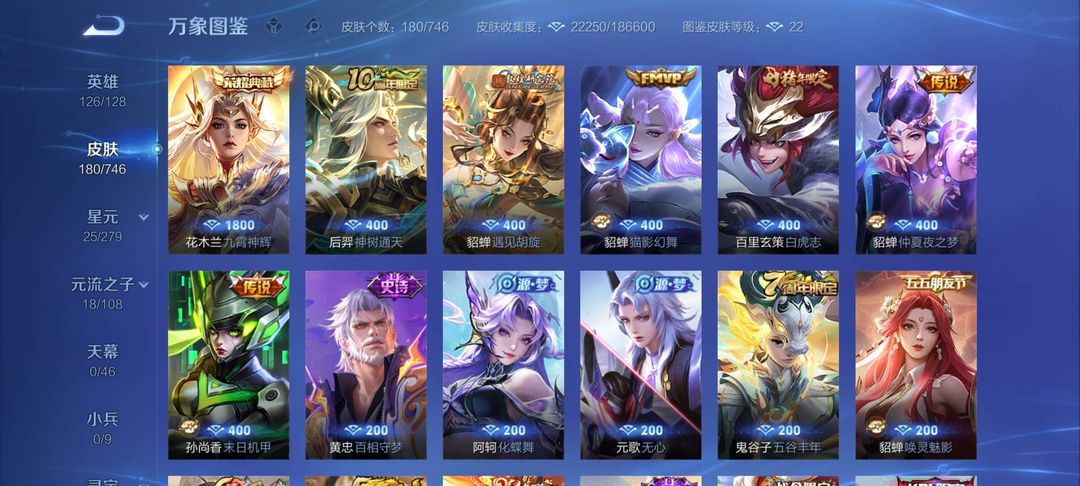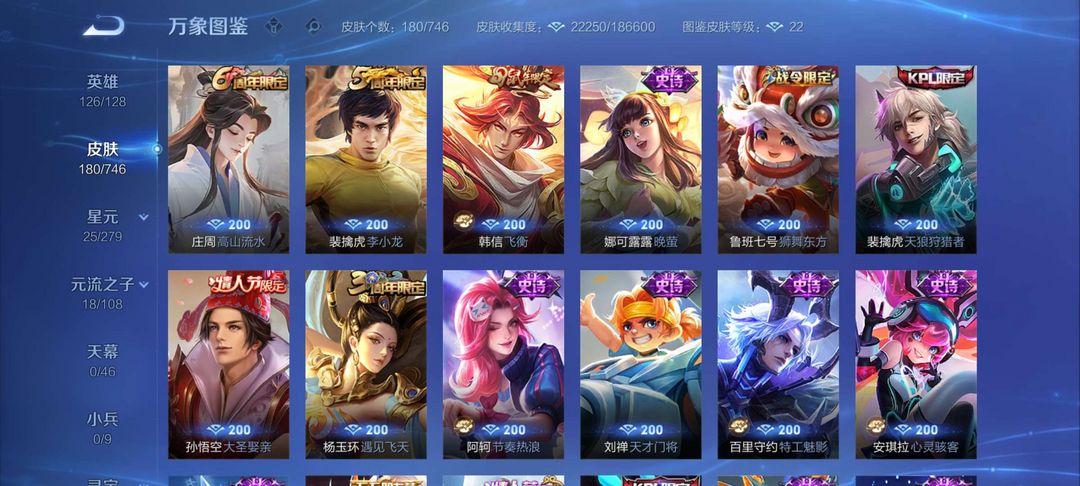 花木兰荣耀典藏 貂蝉kbl限定 等等一系列限定皮肤