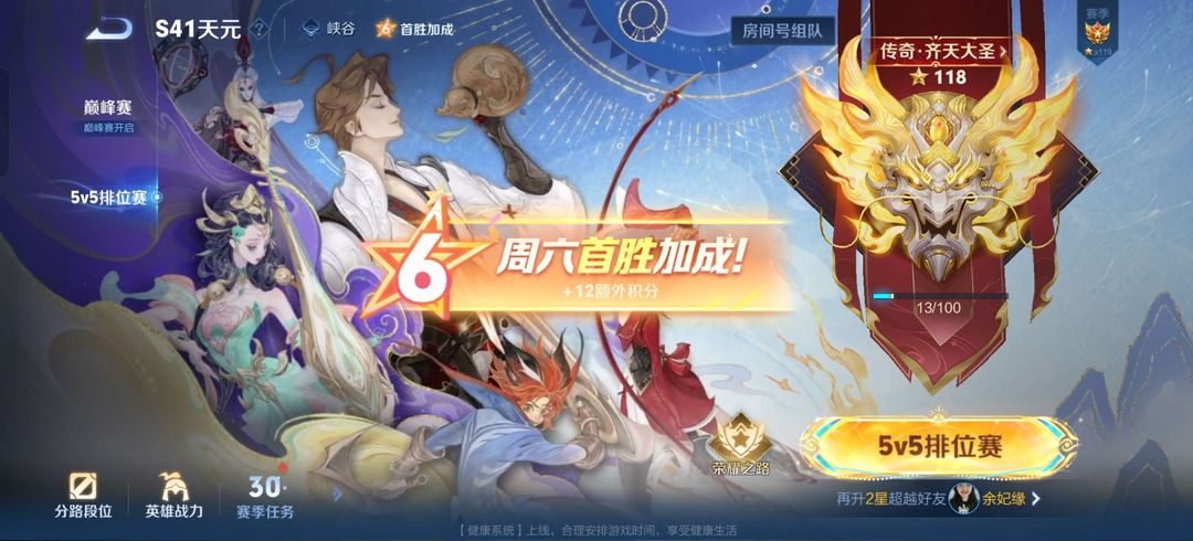 段位为125星,猴子至尊宝市标,打野满铭文,花木兰,司空震,都为县标