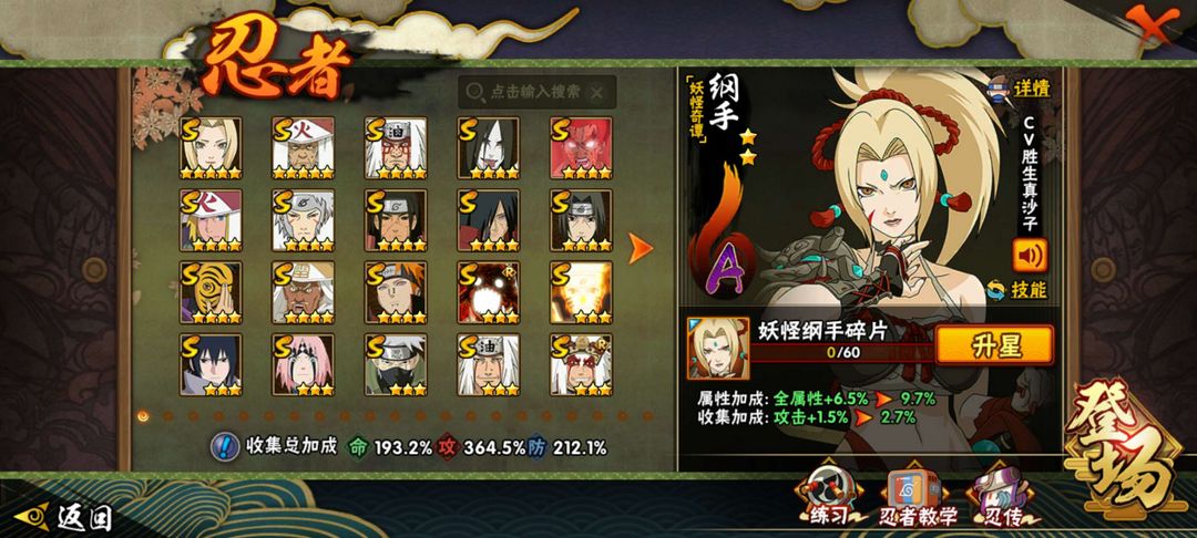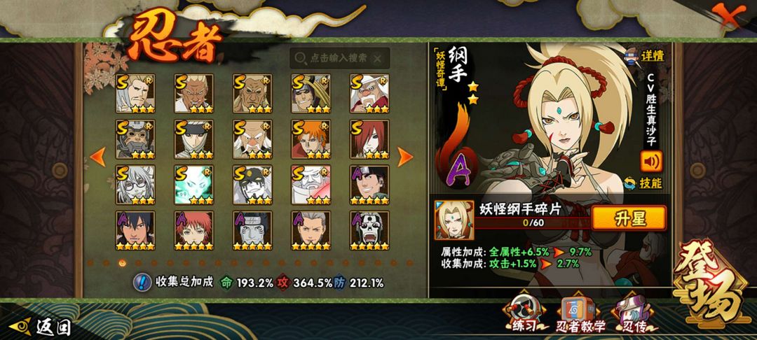 侠影佐助宇智波斑五影会谈•妖怪纲手•全忍者全通灵•54S.104A412忍者50通灵3750w顶配号