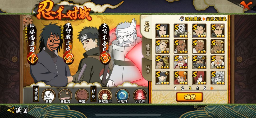 装备描述:34S须佐卡卡西★忍战艾★永恒佐助★忍战樱★九尾鸣人★死门凯★忍战带土★秽土柱间★秽土鼬★仙人兜★秽土斑★熊猫二尾螃蟹万蛇守鹤★惊门凯★百机蝎★泳装照美冥★泳装小南★三船绝★新春鼬★新春水门★1450战力3800魔抗
