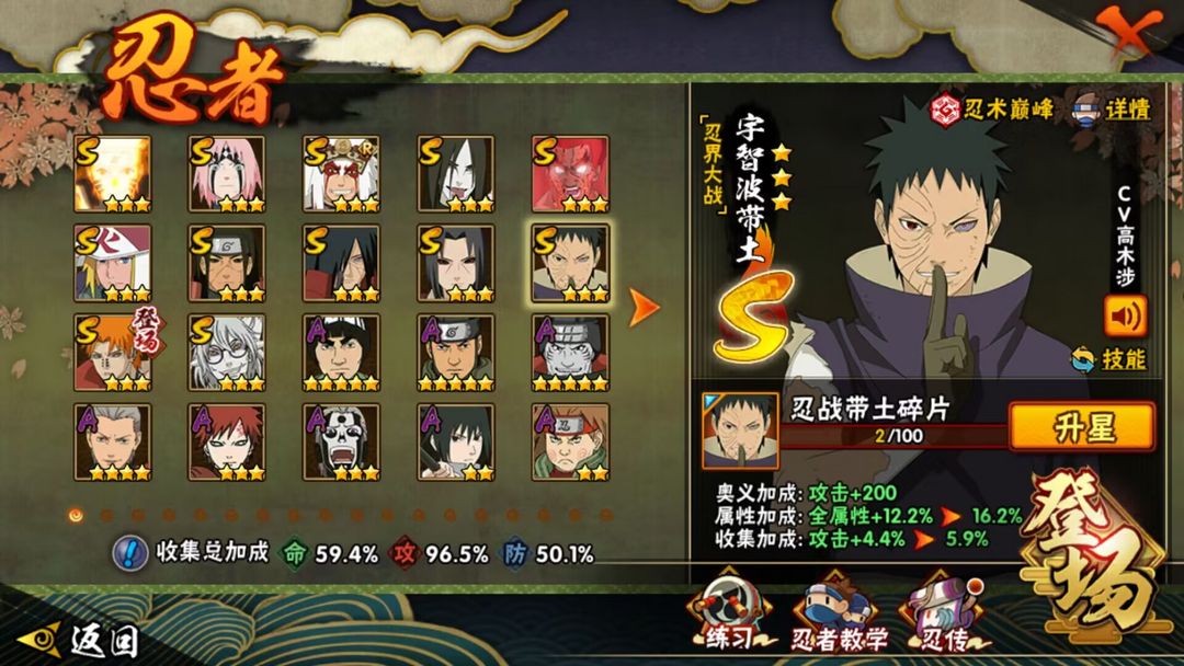 20S★九喇嘛水门★须佐卡卡西★秽土解斑★九喇嘛鸣人★天道超★永恒佐助★忍战带土★须佐佐助★秽土鼬