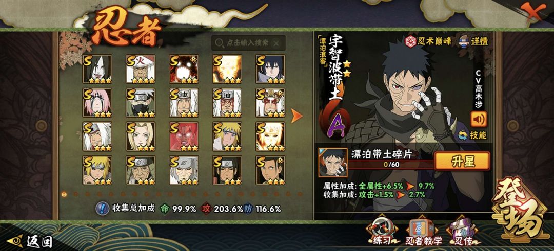 奇妖纲手和九喇嘛水门已招募✨漂泊带土✨大筒木舍人✨传说自来也✨六尾鸣人✨漂泊小南✨忍战雷✨白面具✨
