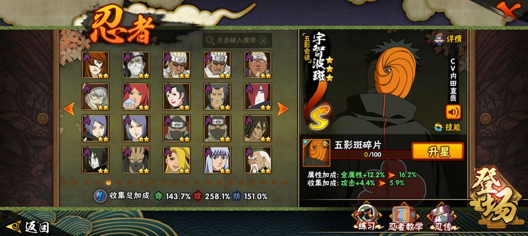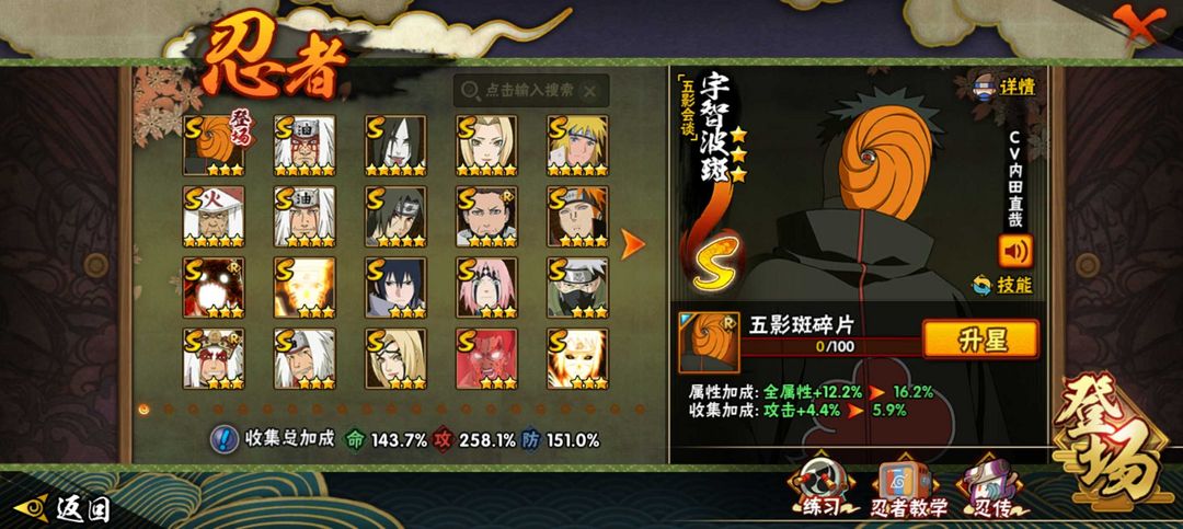五影斑⭐51S⭐六尾鸣人⭐传说自来也⭐须佐卡卡西⭐须佐止水⭐忍战带土⭐天道超⭐三代目风影