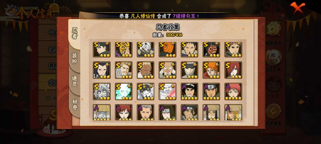 侠隐佐助已秒★46S 59A★2290w战力基本全高招S基本全忍法帖有熊猫