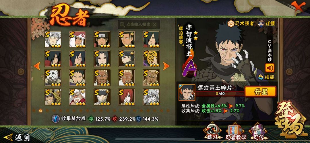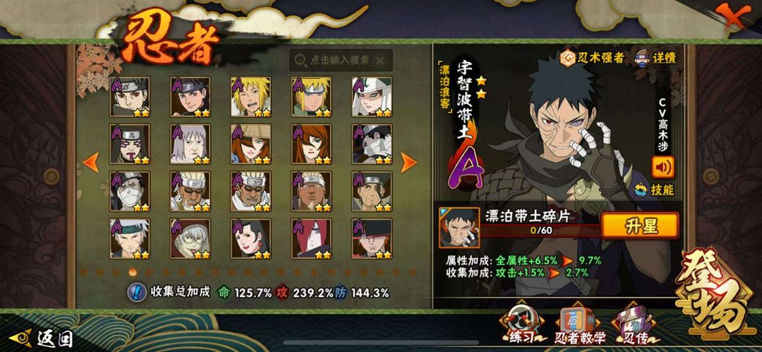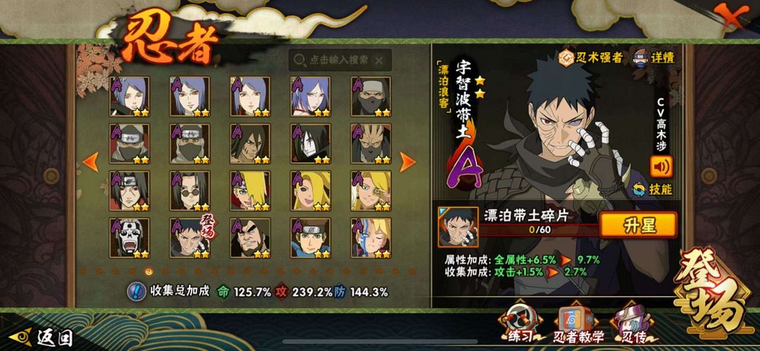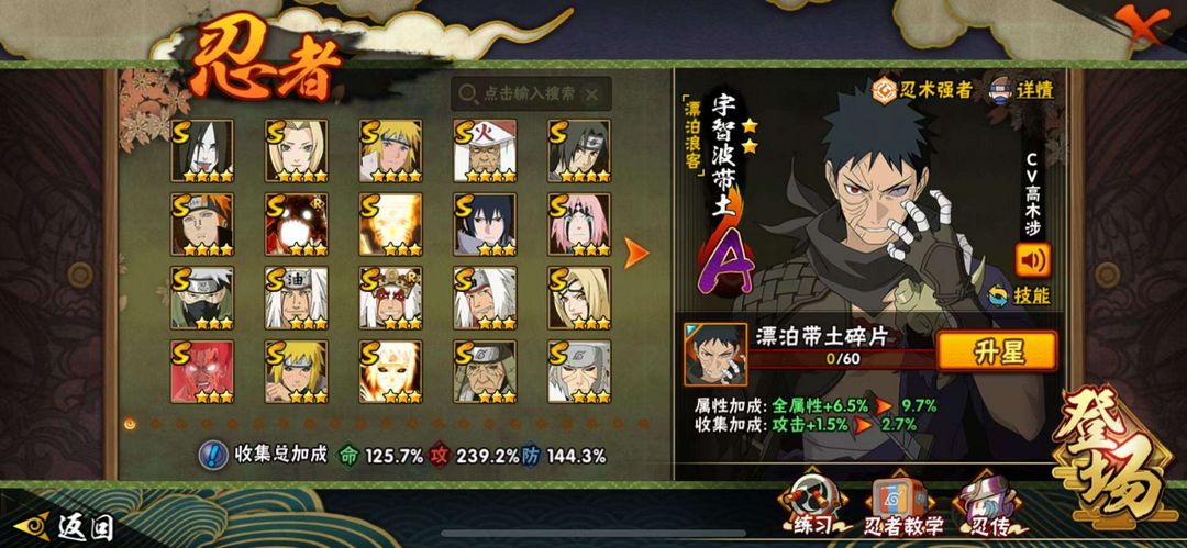 装备描述:全s忍者号,新春,漂泊系列齐全,秽土水门已出,熊猫等通灵齐全,密卷满级功能