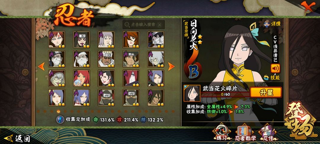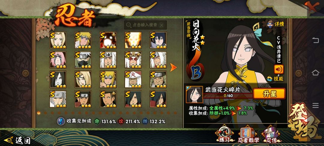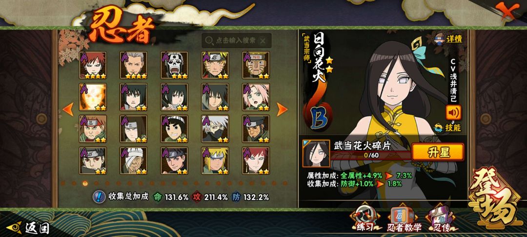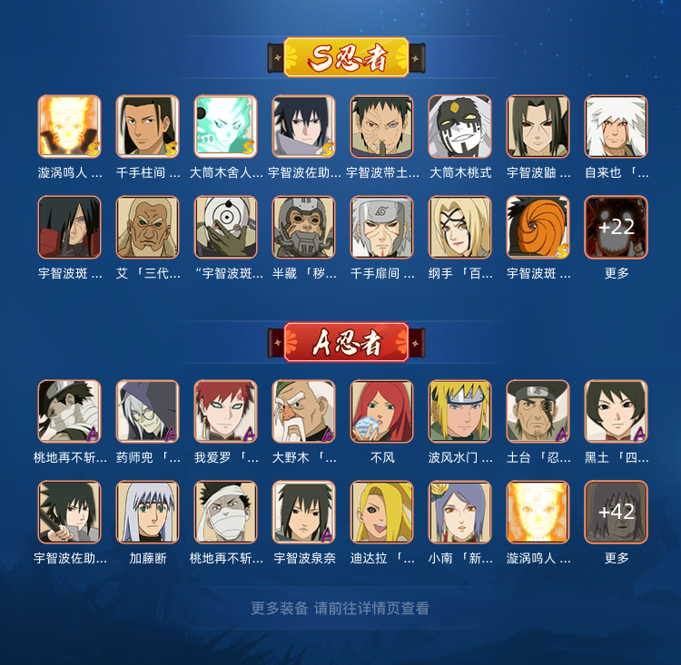 装备描述:多忍者,有对个忍法帖,漂泊带土,小南,侠影兜等。随便打排位