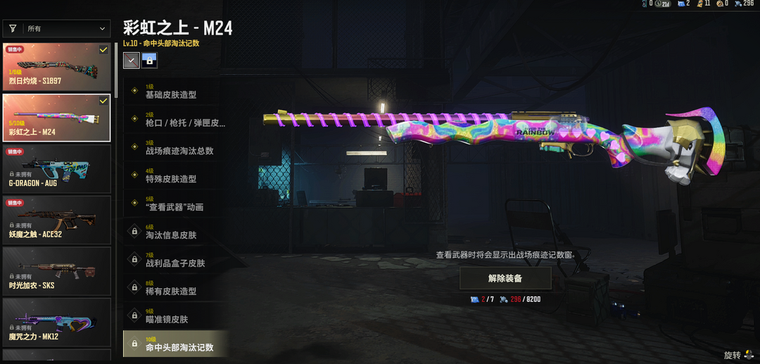 ⑤级彩虹之上M24✅①级烈日烧灼S1897✅竞速之道AKM✅大理石SLR✅金色落叶SKS✅镀金AWM