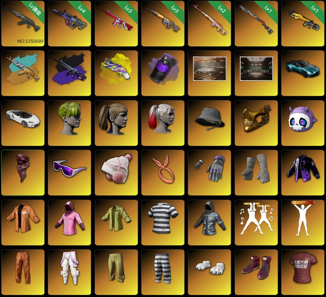6神器10级异色青龙✅4级显卡aug✅3级异色无信号✅黑盒小丑女橙运动✅白绷带手套滑雪镜✅马丁迈凯伦
