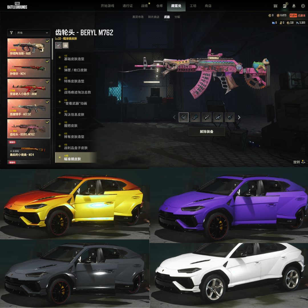 满级⑩级火麒麟M762⚛️③孙悟空M24②恶魔ACE②圣诞AKM①弥诺AUG多色兰博基尼